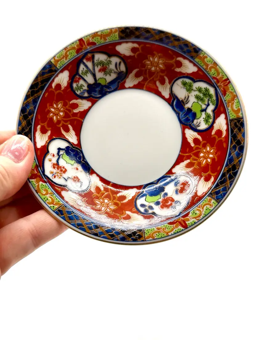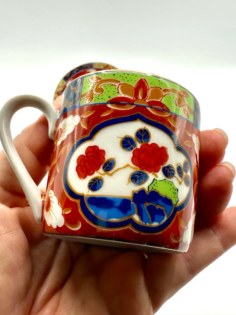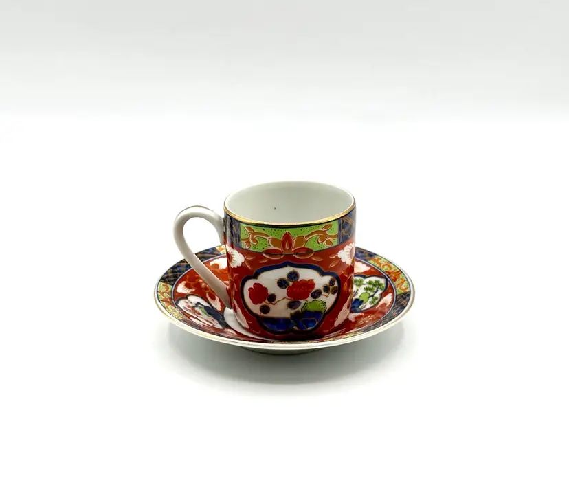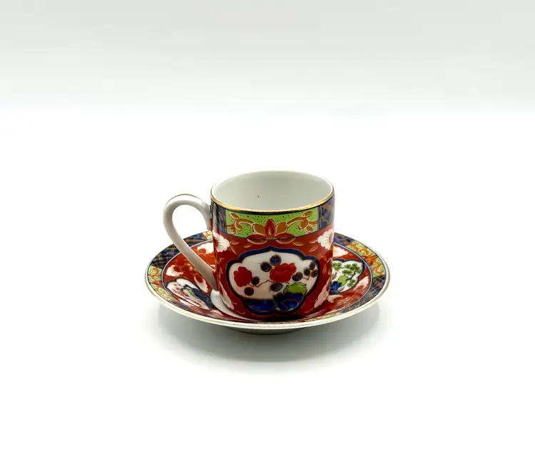 Takahasi Japan Small 2" Coffee Tea Cup Mug & 4.75" saucer red blue white Floral