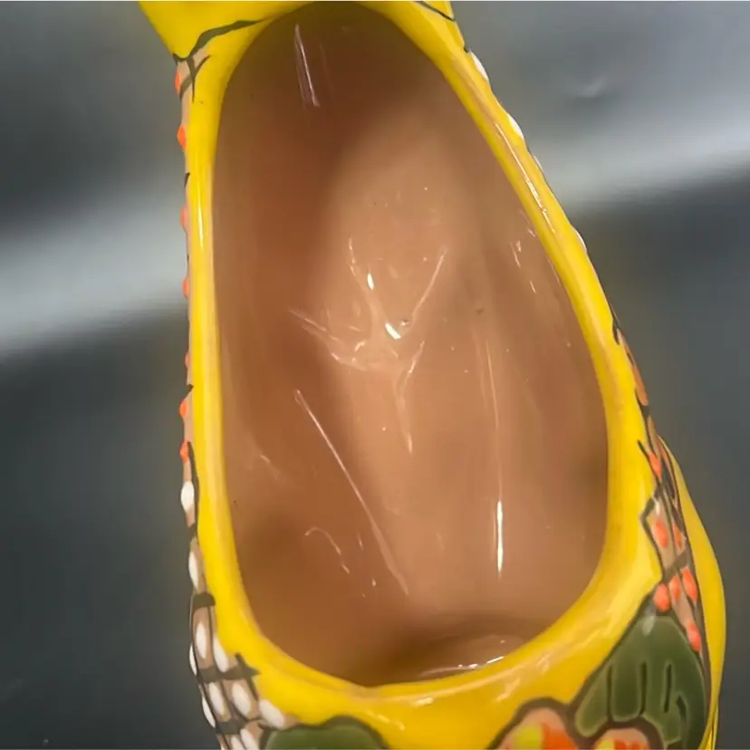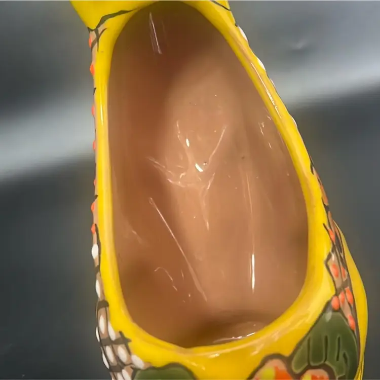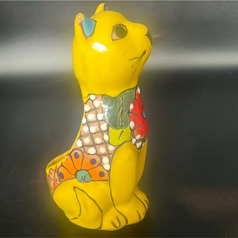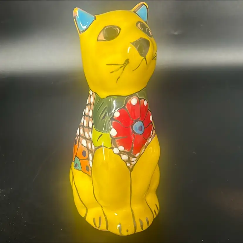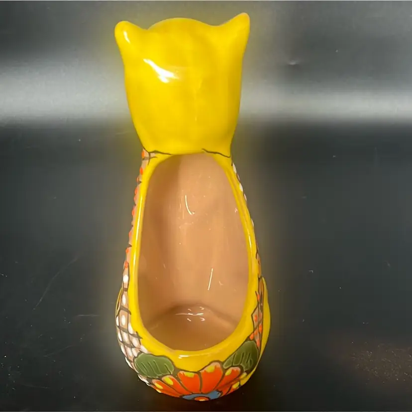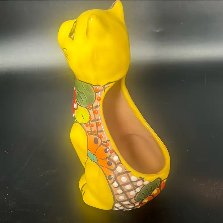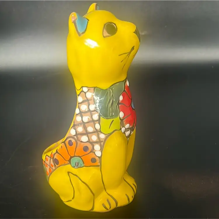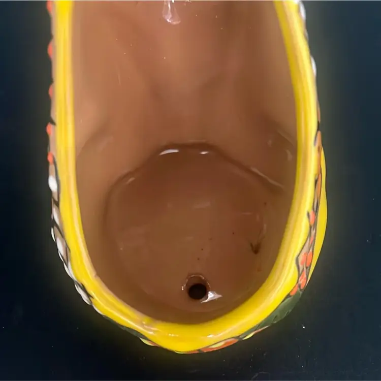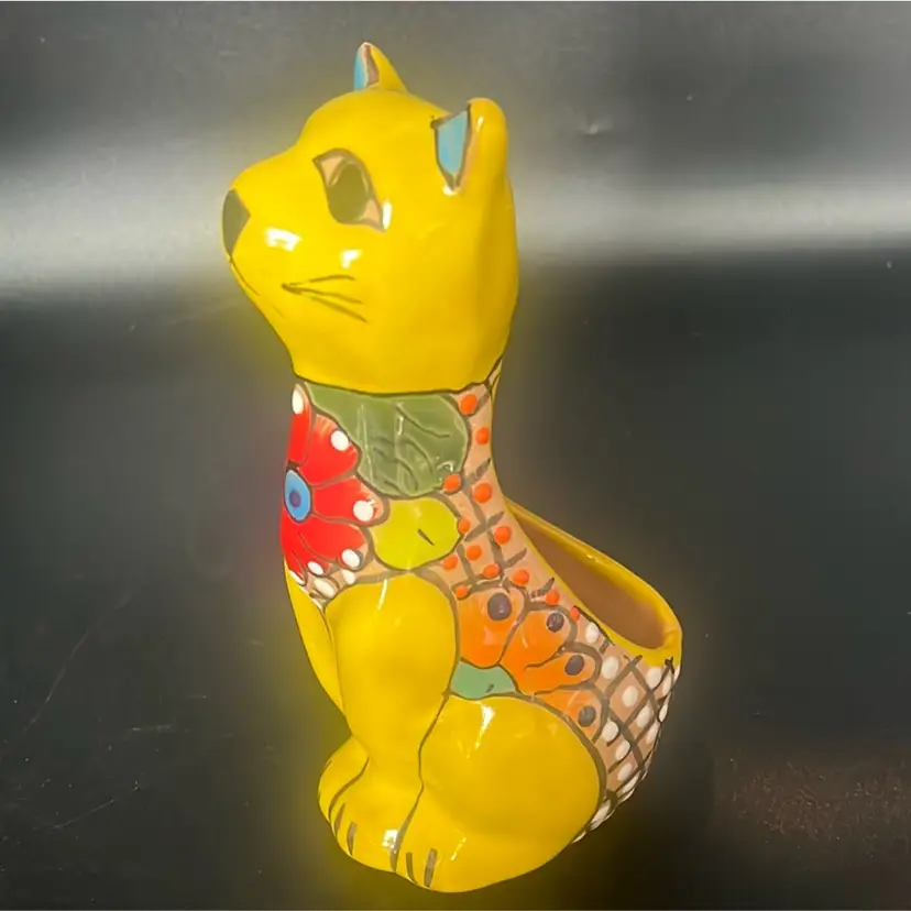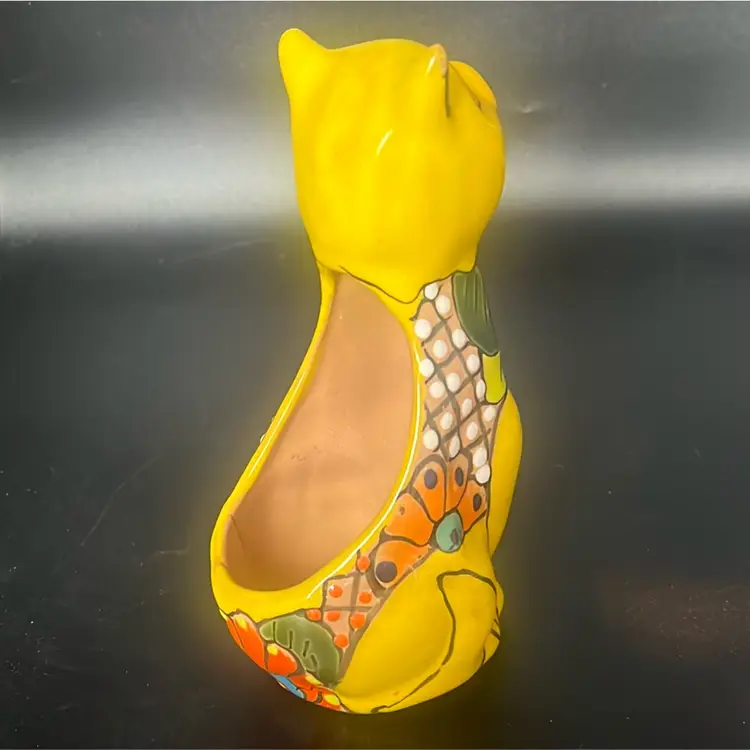 Ceramic pottery with a lead-free glaze. Design: Features vibrant, hand-painted floral motifs and colorful patterns. Function: Designed to hold small plants, succulents, or flowers, suitable for indoor or outdoor use. Measures a little under 8”