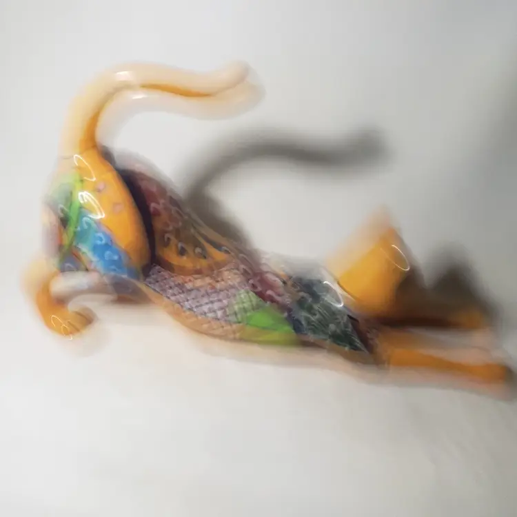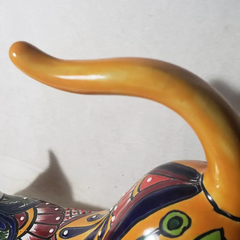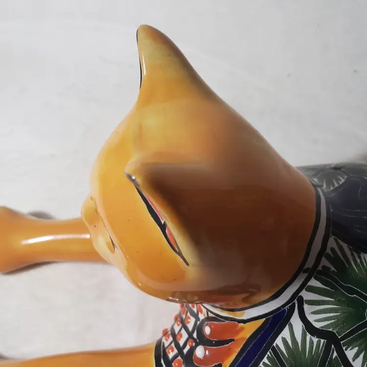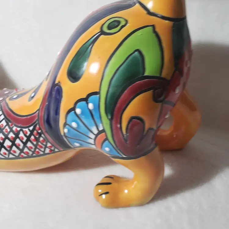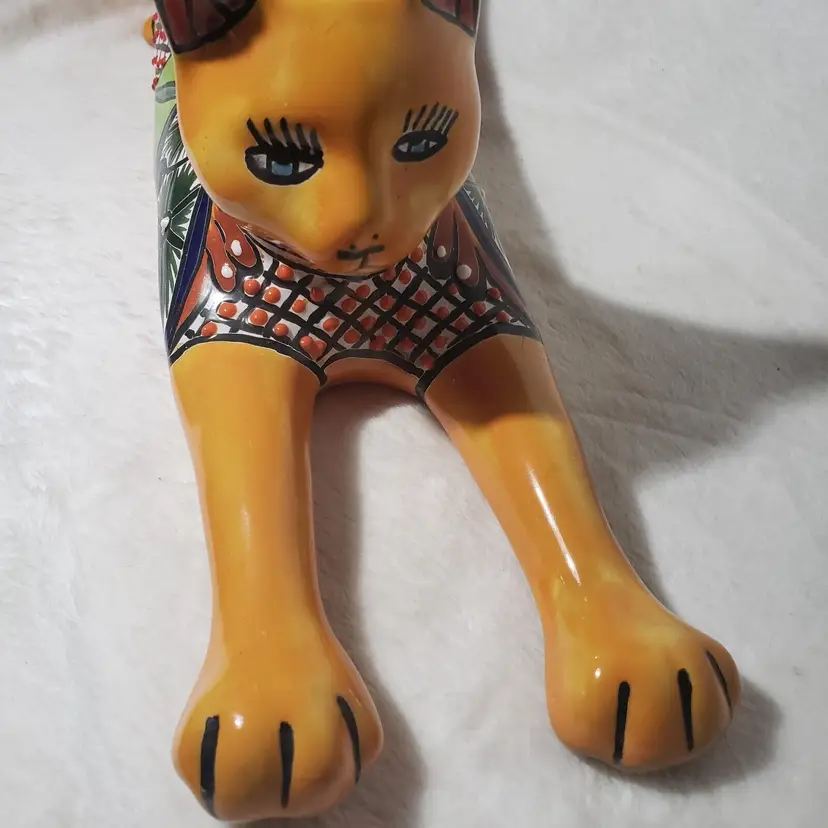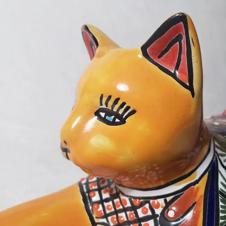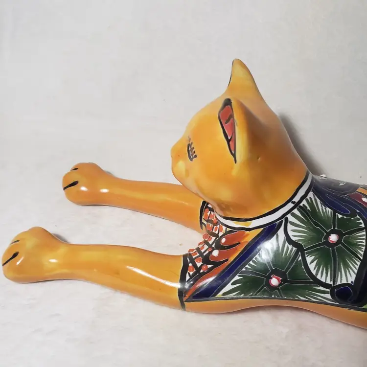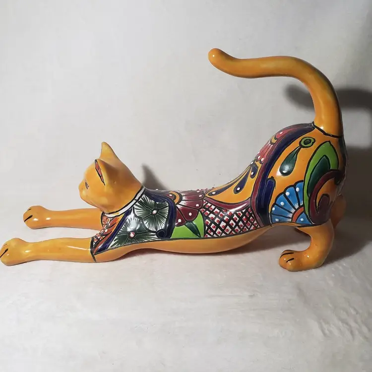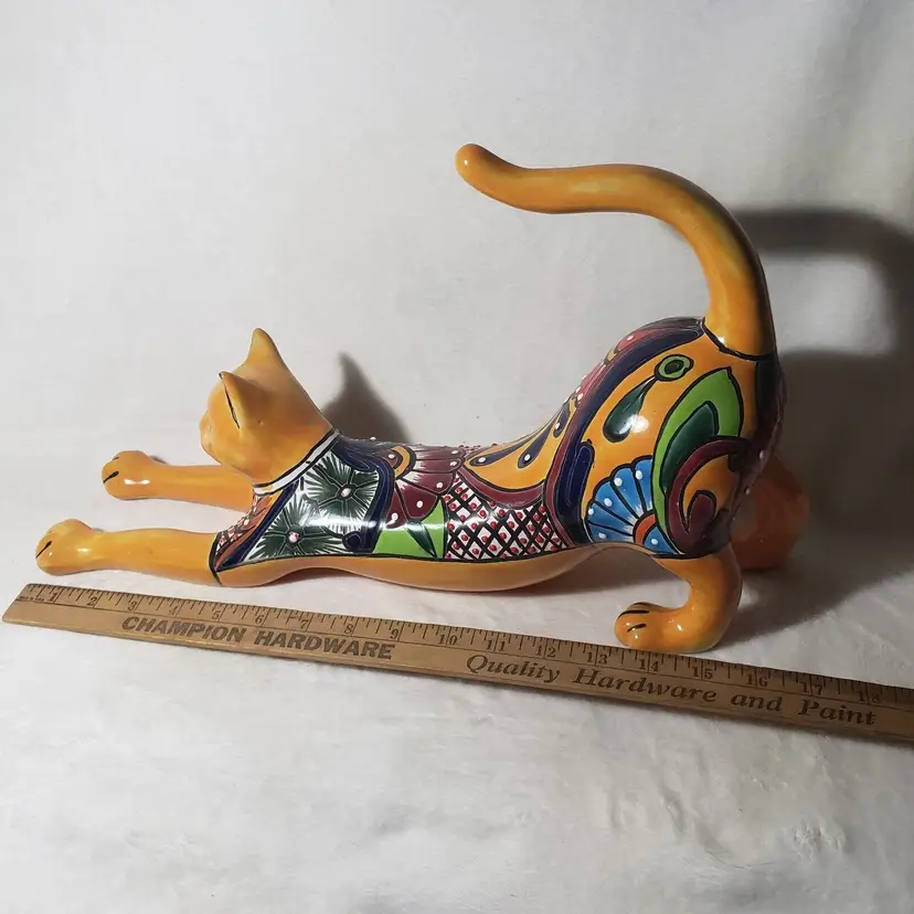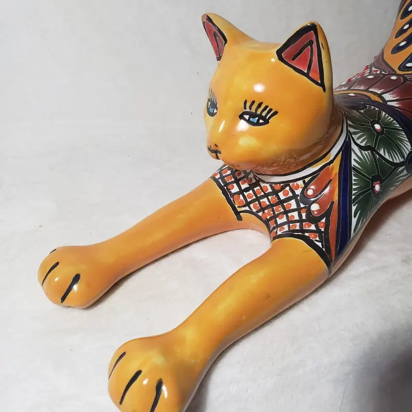 Talavera Cat Stretching Folk Art Arte Cardona Pottery Hand Painted VTG **repair*