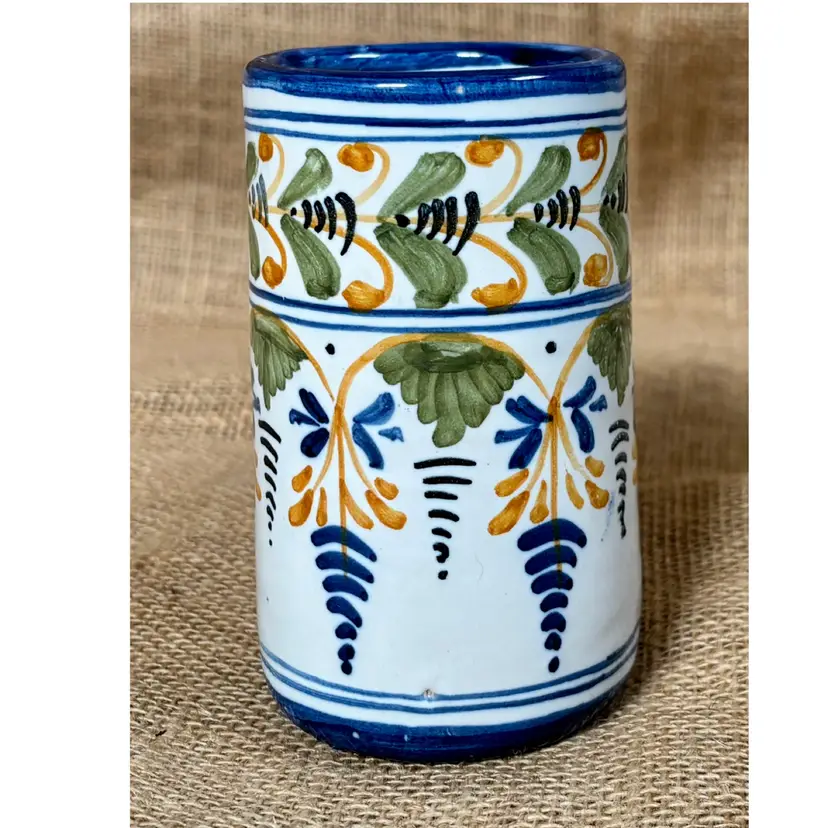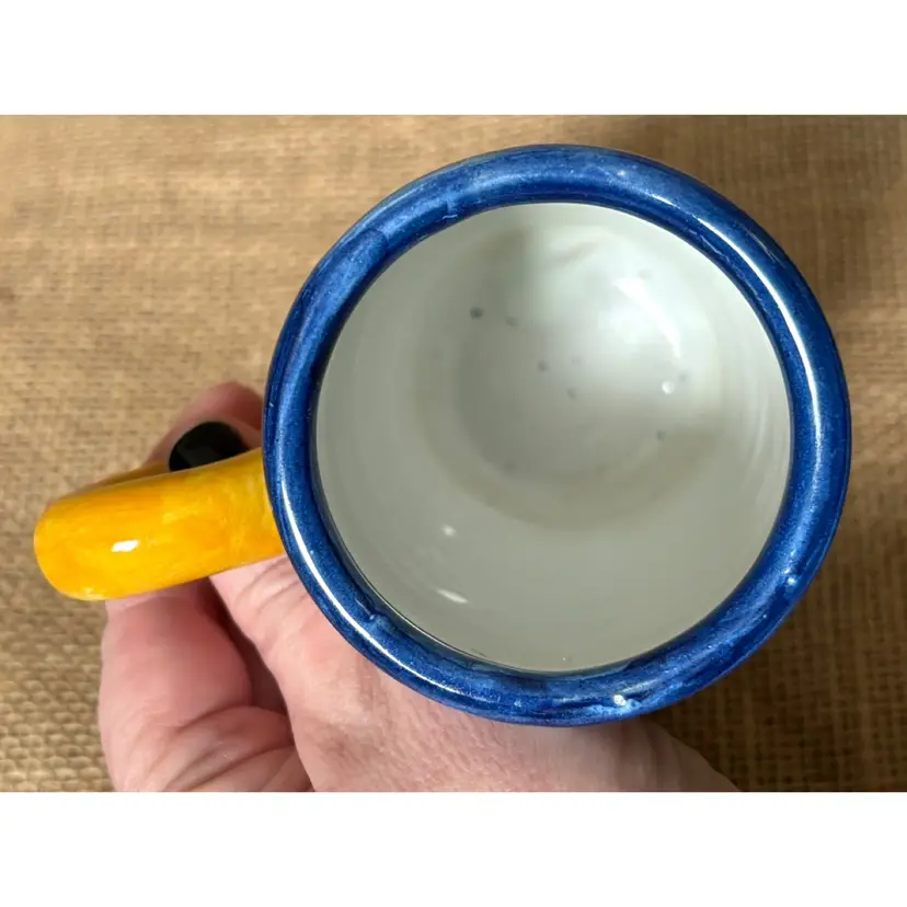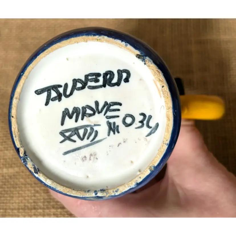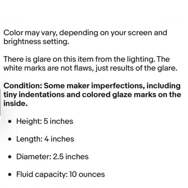 Condition: Some maker imperfections, including tiny indentations and colored glaze marks on the inside.