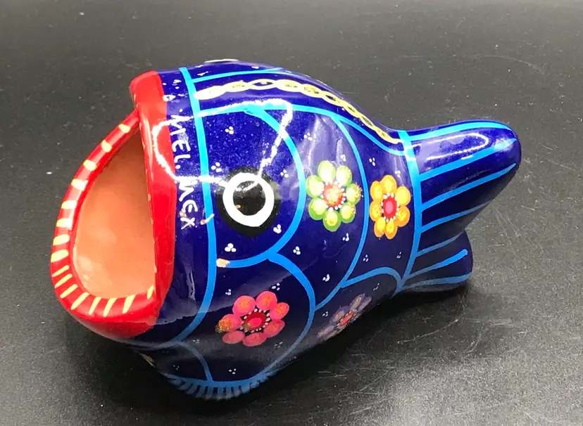 Talavera Mexican red clay pottery whale fish marine life handpainted sponge holder trinket. Great displayed condition no chips or cracks
