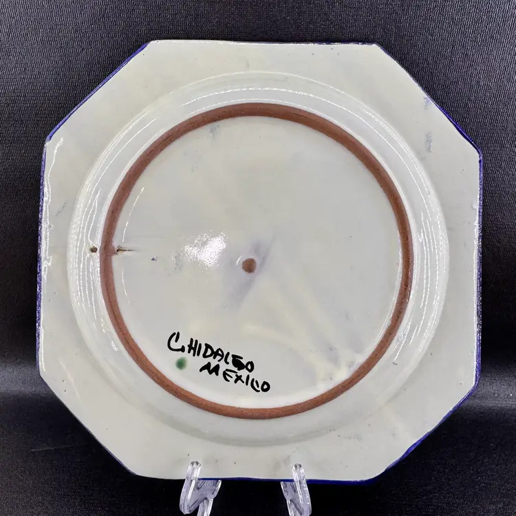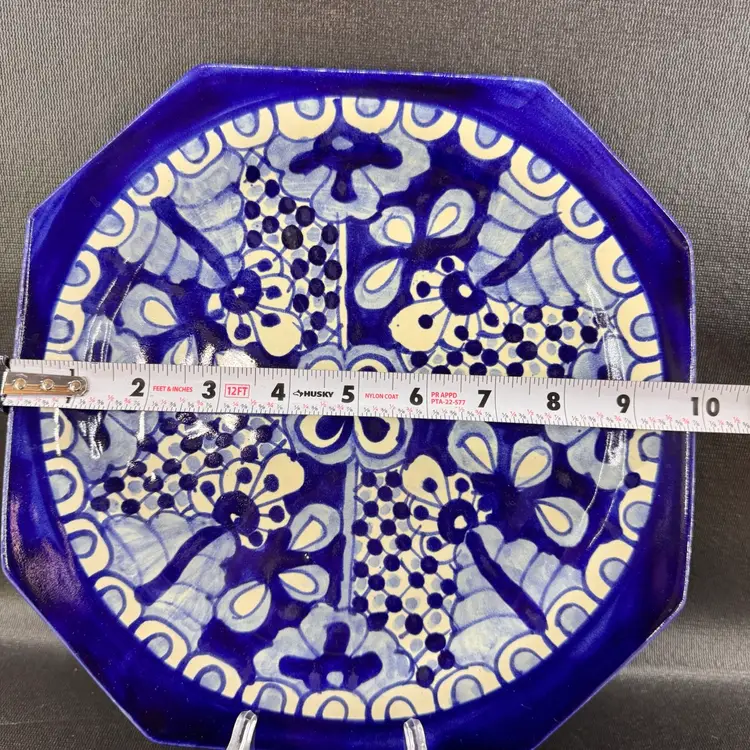 Talavera Mexican Redware Pottery Decorative Wall Plate Blue And White