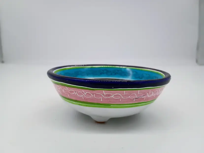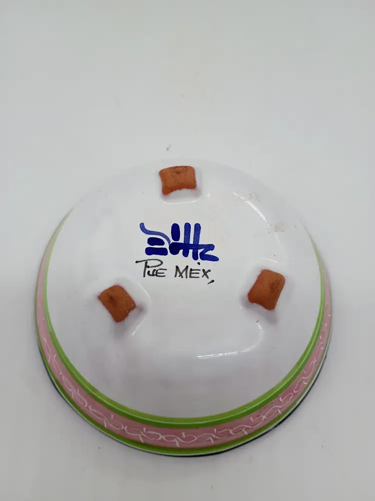 Talavera Mexico Folk Art Pottery Salsa / Dip Bowl Signed Bittz. This is 4.5"Diameter and just under 2 inches tall at rim. Can also be used as a open salt dip Sauce dipping bowl., This is preowned, No chips cracks of flea bites, glaze intact. No stains or discoloration inside. Artist signed on bottom. Excellent condition Ships USPS domestically and UPS/ USPS International Shipping globally