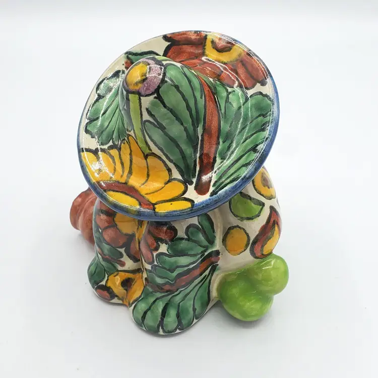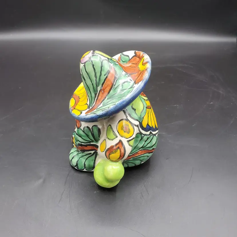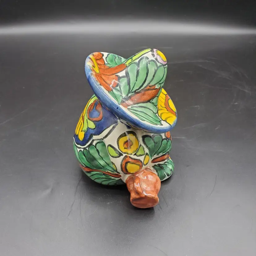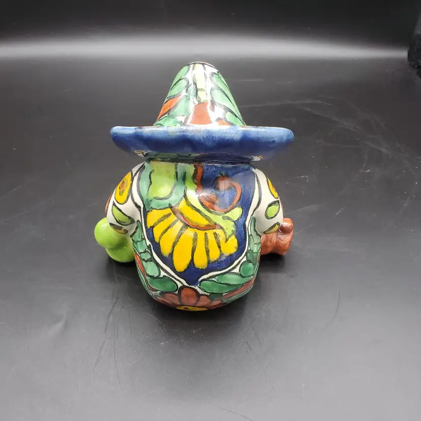 I believe those are jugs on either side of this little guy resting under his sombrero. He may have had too much to drink or just needs a break from the sun. He sits slightly over 4" and has no damage.