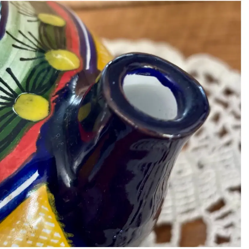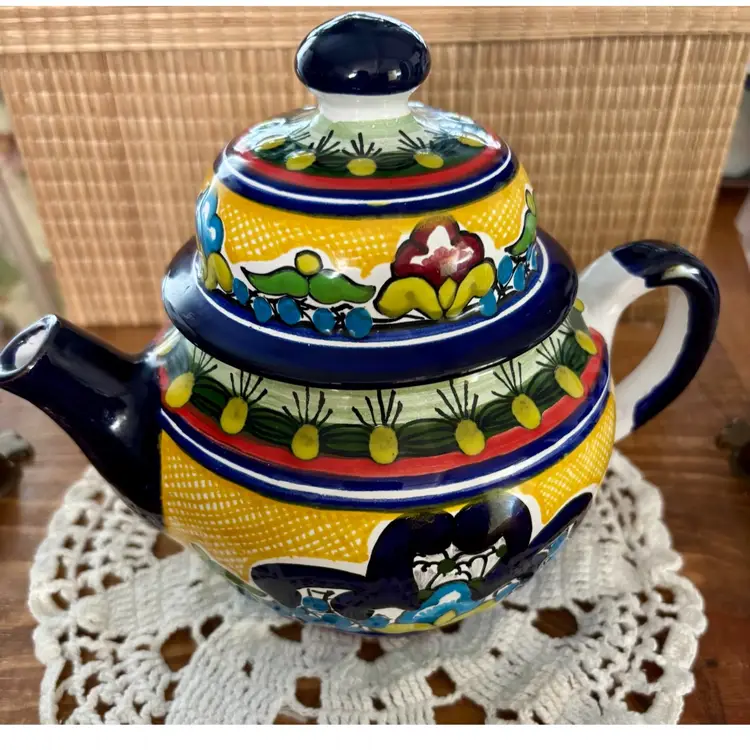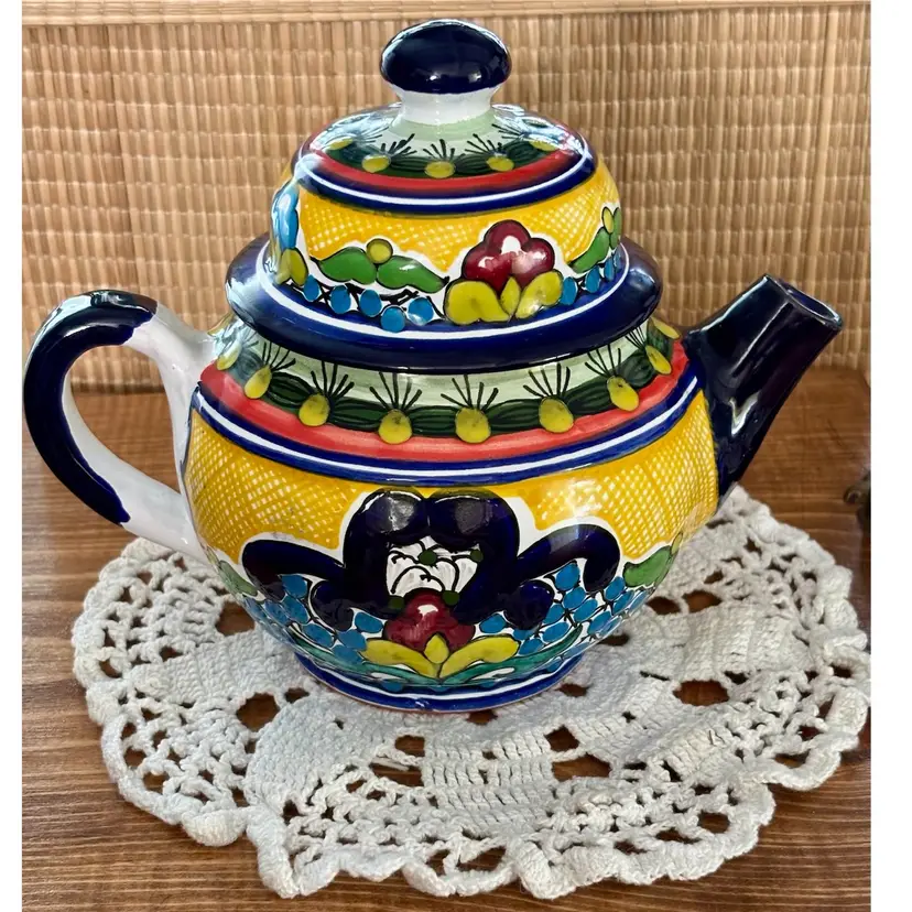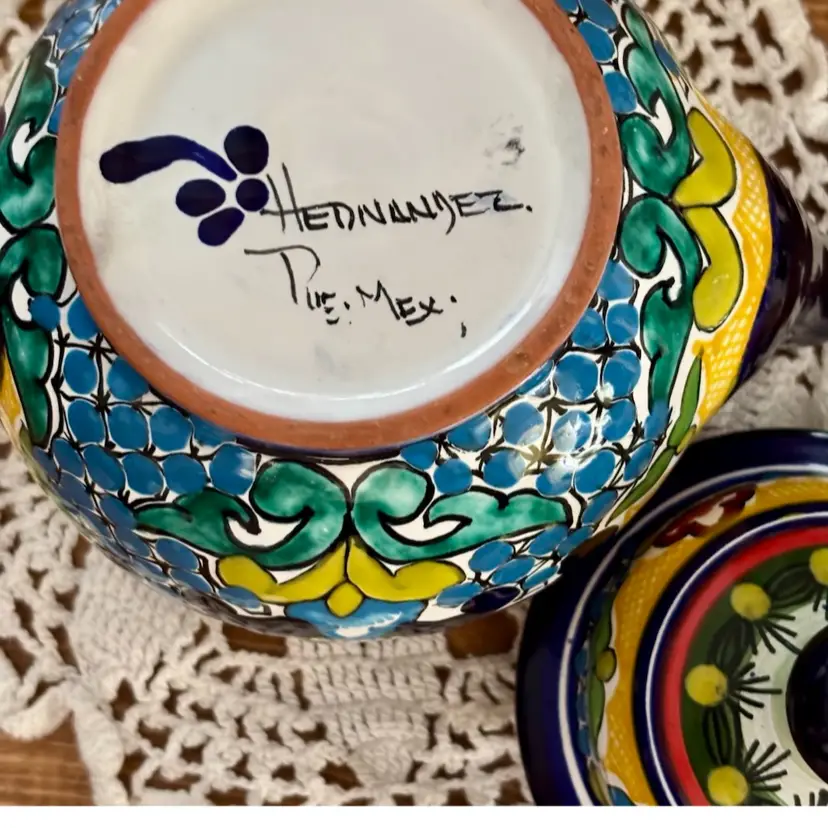 Approx. 7”tall, 8”from handle to spout, 5”diameter Authentic signed “Hernandez Pue Mex” Puebla, Mexico Talavera Teapot Redware Clay Terracotta Ceramic NO CHIPS or CRACKS, MINT CONDITION! Beautiful hand painted piece for your collection of Talavera or Tea Pot Collection!