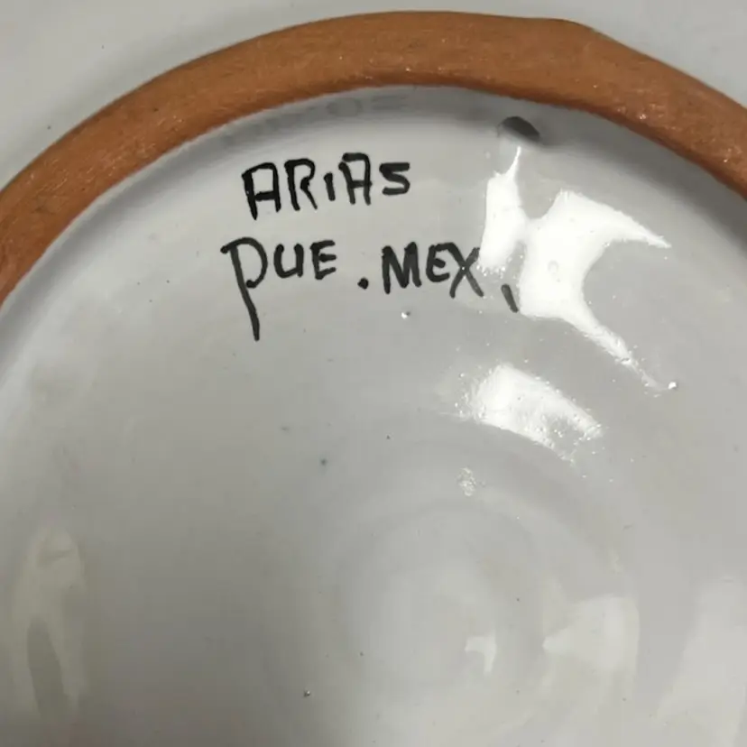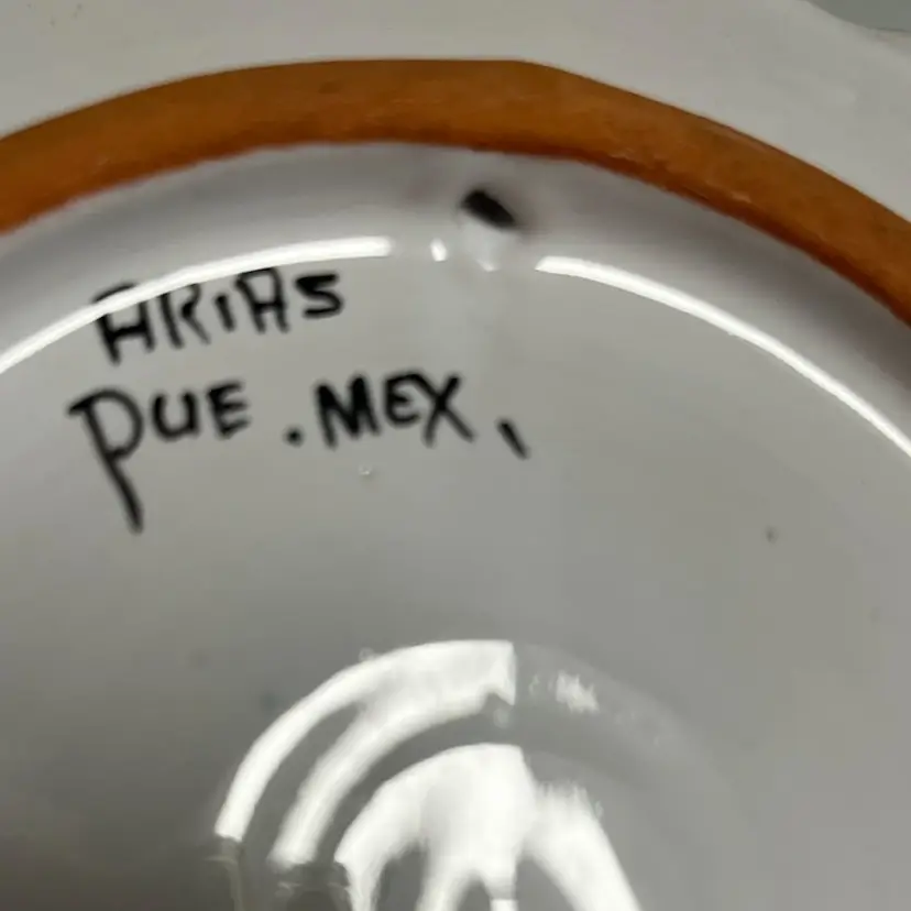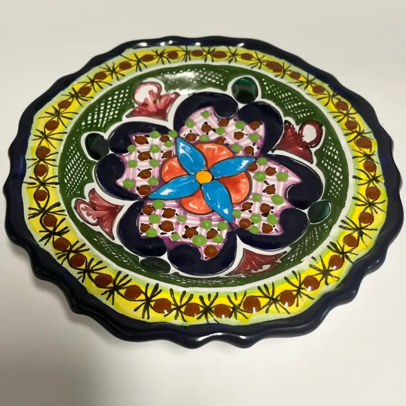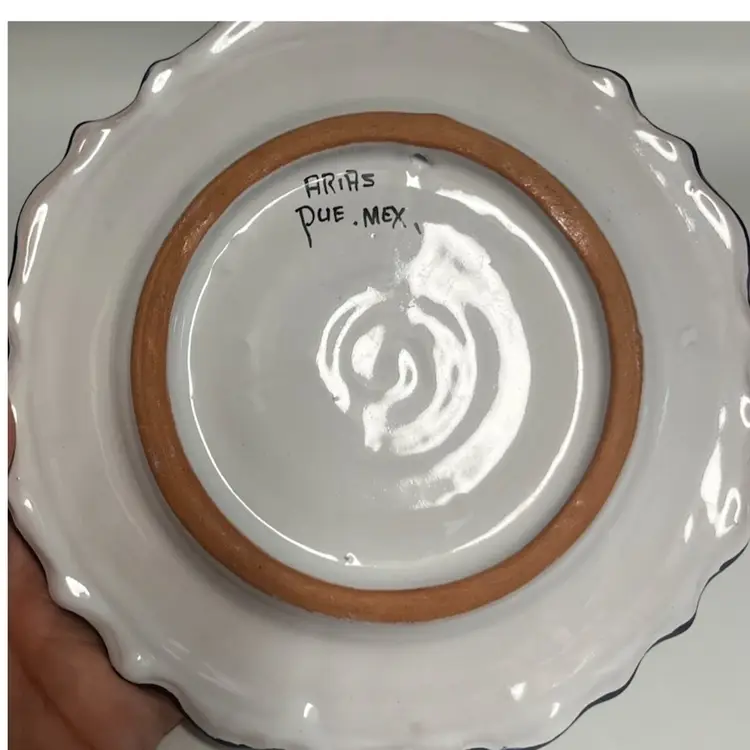 Excellent condition- No chips cracks- Signed. Love the scalloped edge. Has holes for hanging.
