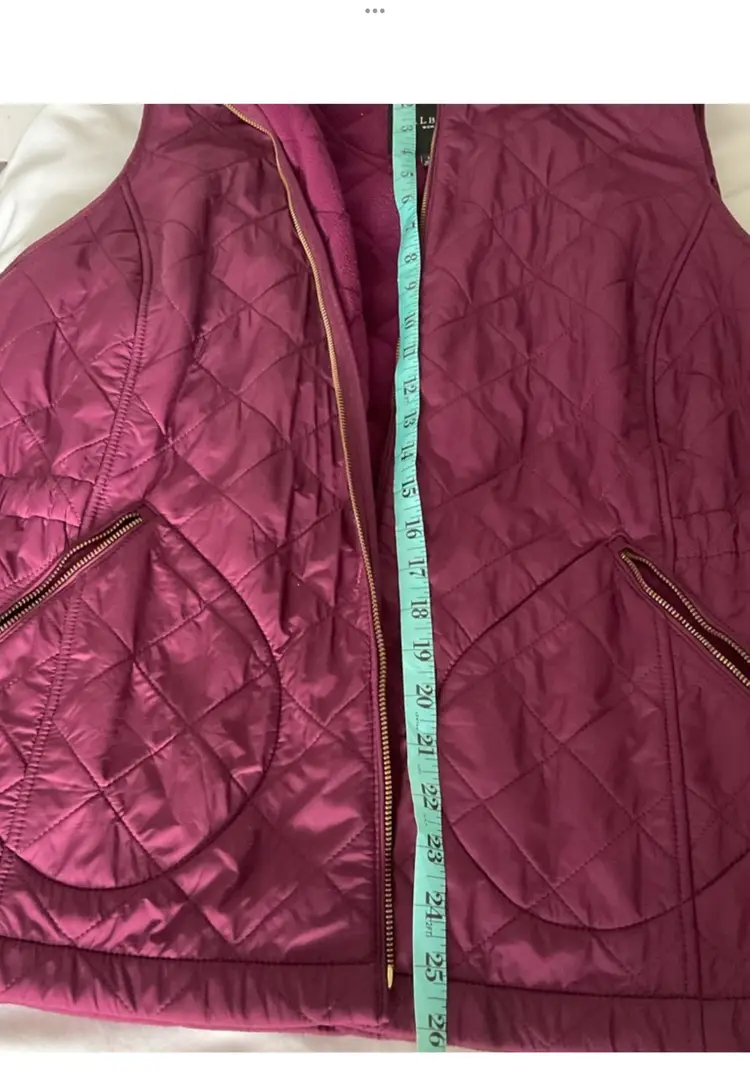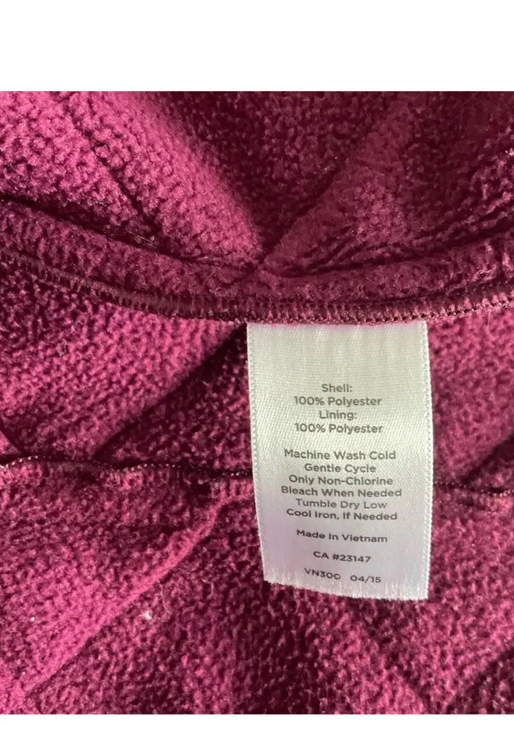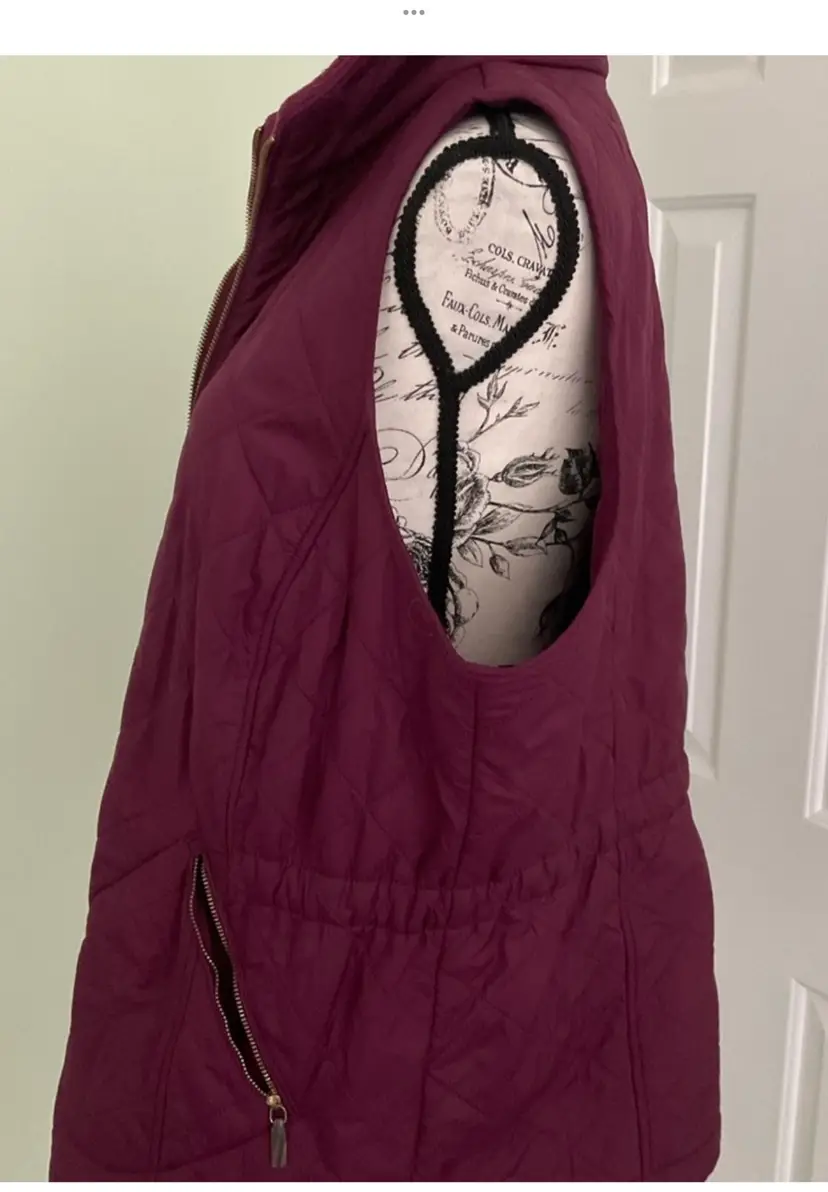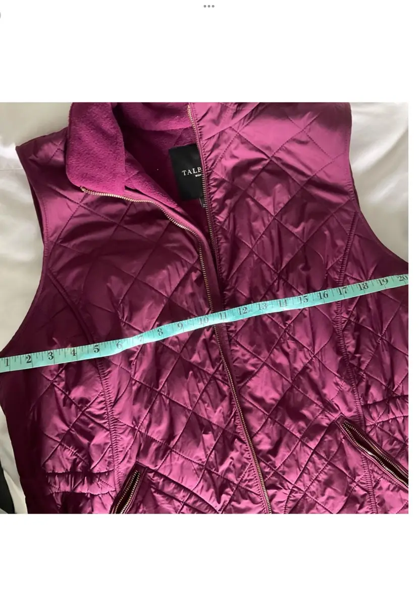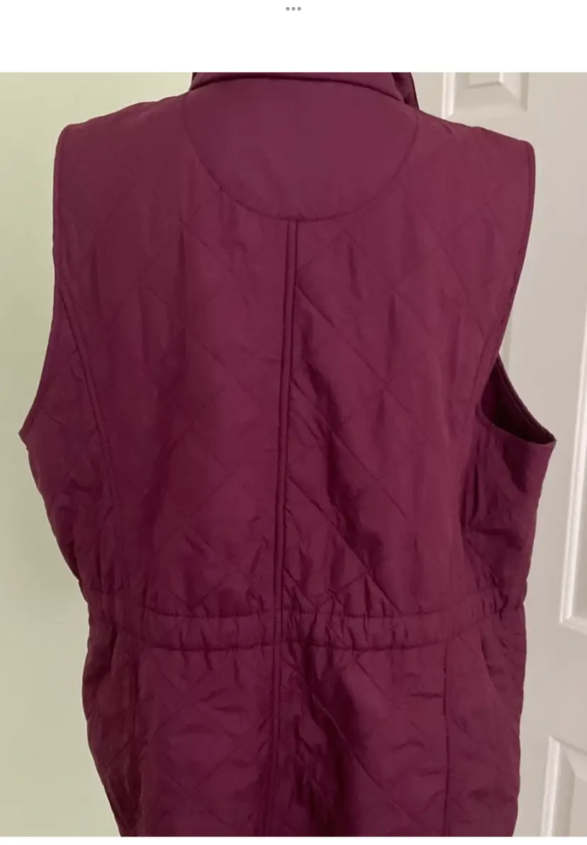 Talbots Woman full zip vest in a beautiful burgundy color. This has quilted outside and fleece inside. Has two front zip pockets.