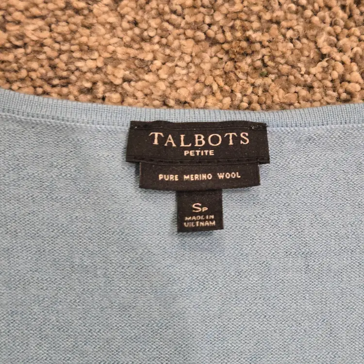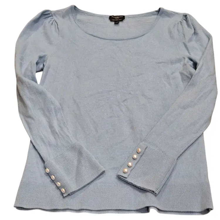 Talbots Women's Puff Sleeve Merino Wool Pullover Sweater Blue Sz Small Soft