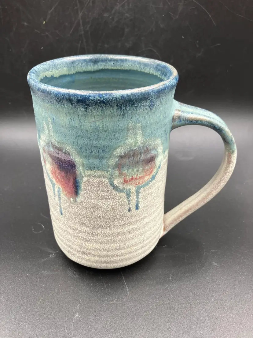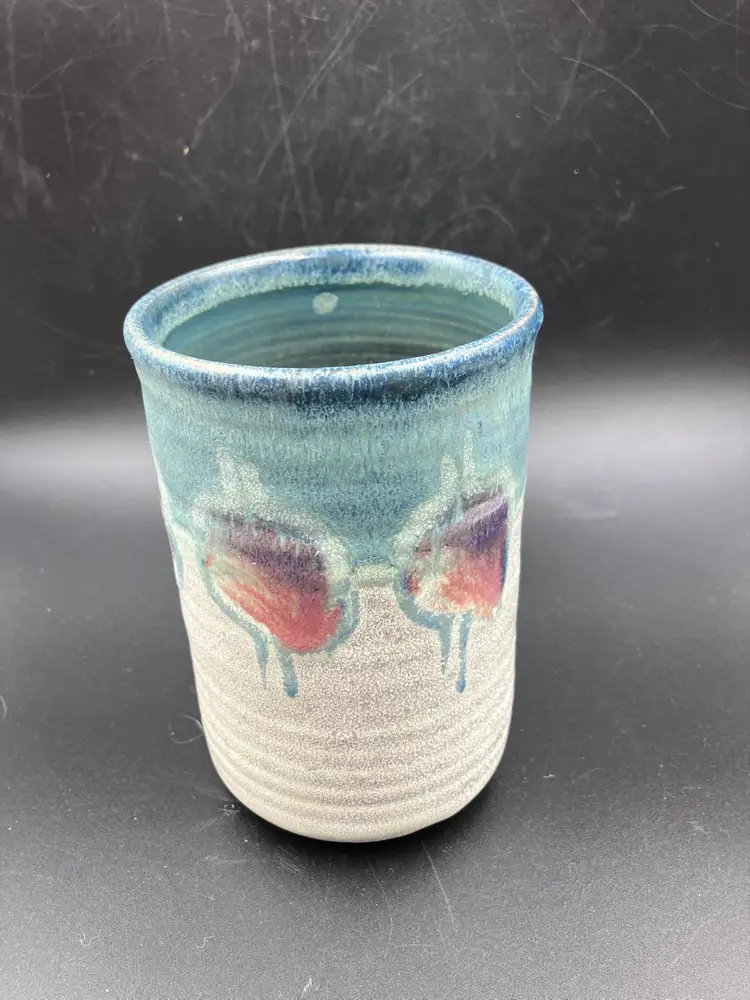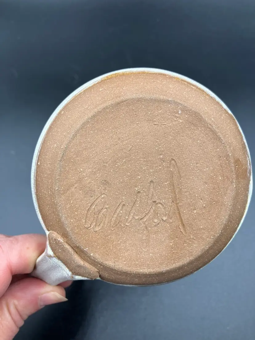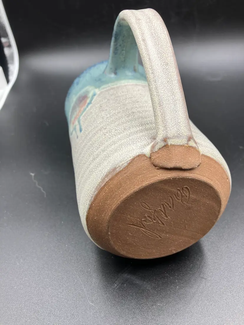 Excellent condition. Measures 5.5” tall by 3.5” diameter and 5.5” with handle. DON BRADFORD . retired teacher and potter at Rockland Center for the Arts NY