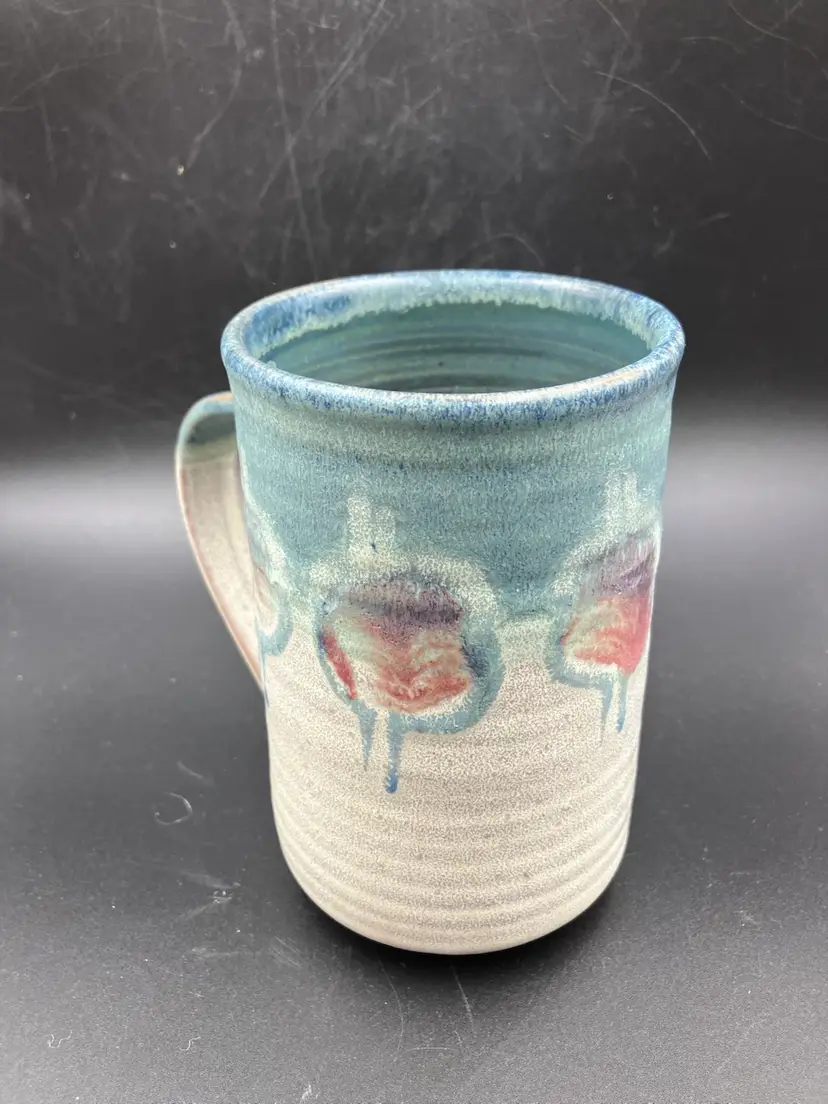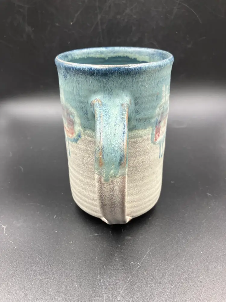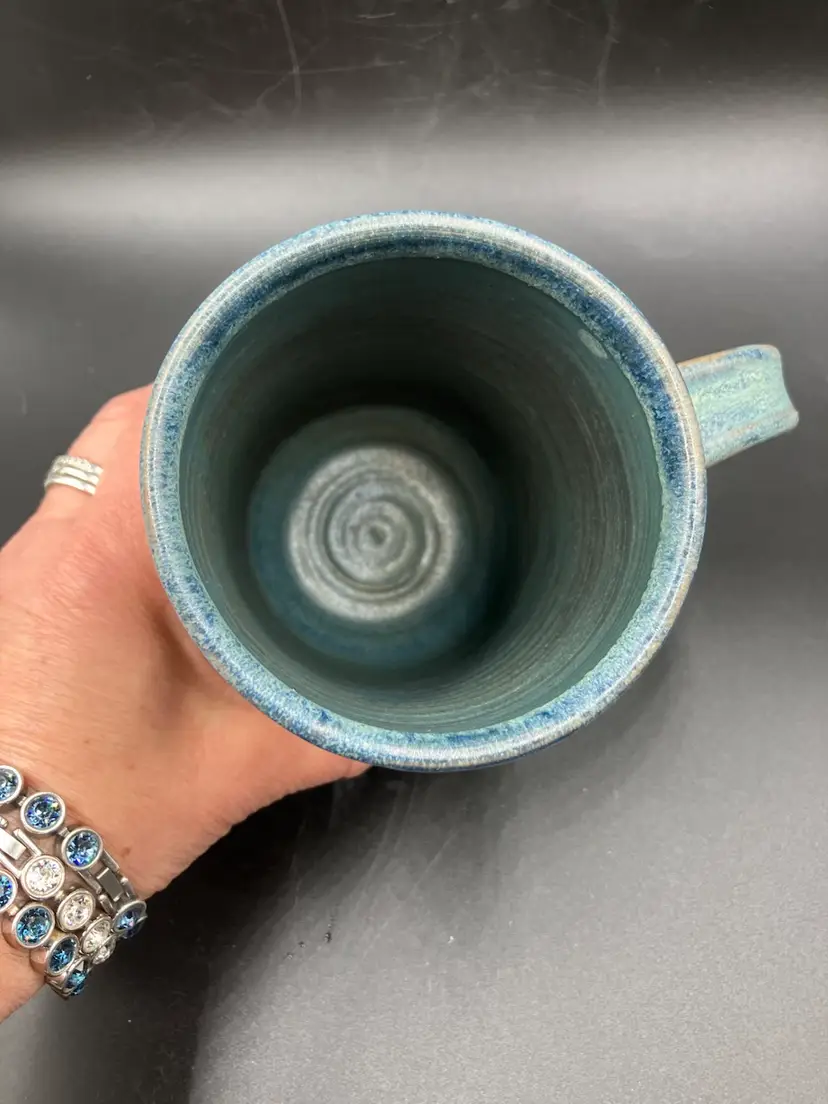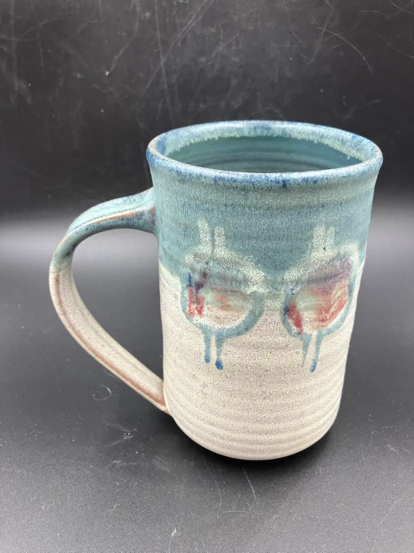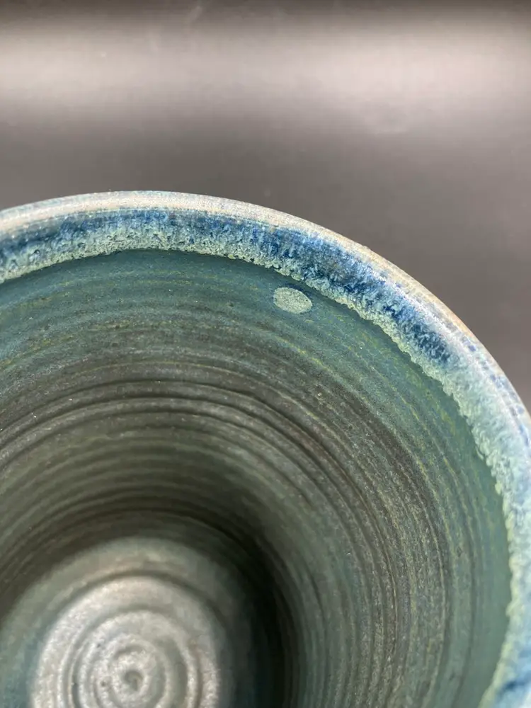 Excellent condition. Measures 5.5” tall by 3.5” diameter and 5.5” with handle. DON BRADFORD . retired teacher and potter at Rockland Center for the Arts NY