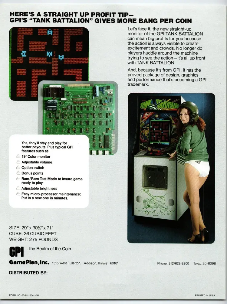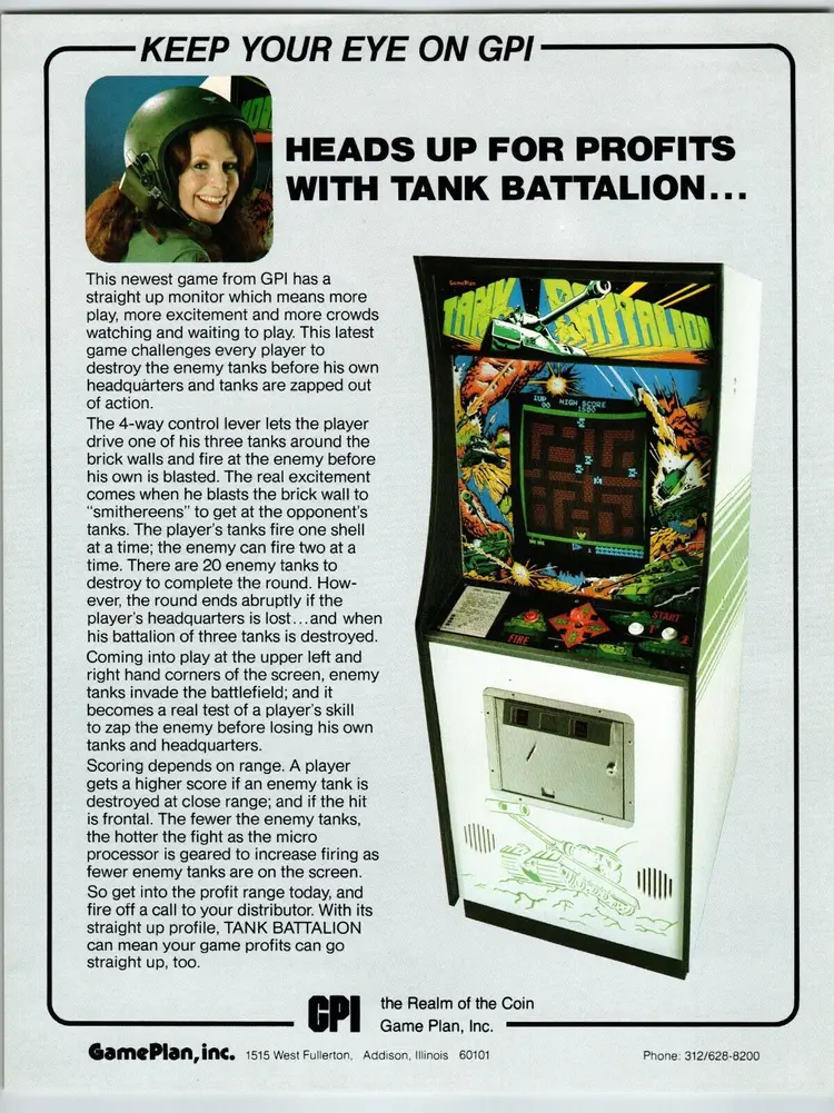 Brand: Game Plan Year: 1981 Game Title: Tank Battalion Theme: Retro Original/Reproduction: Original Country/Region of Manufacture: United States Modified Item: No Arcade: Flyer