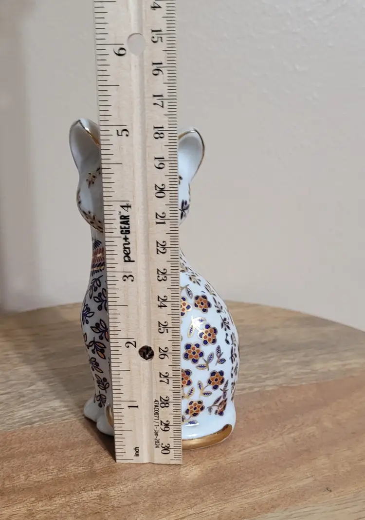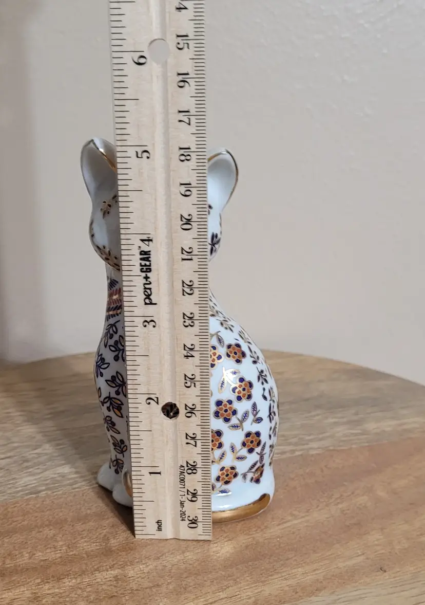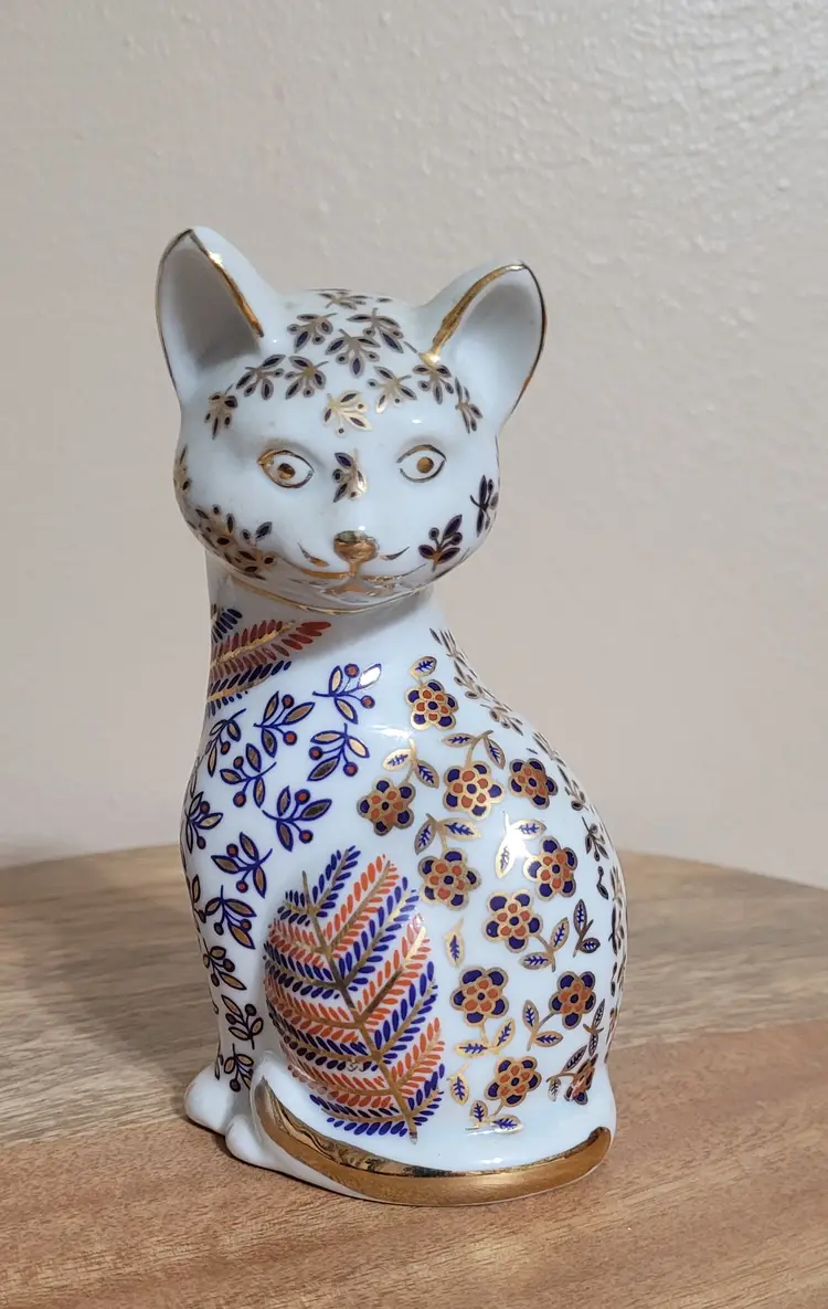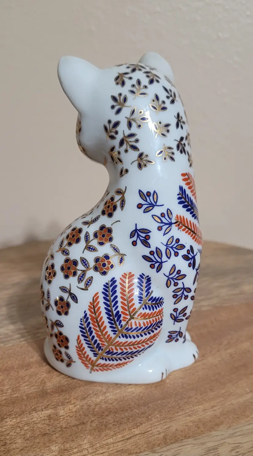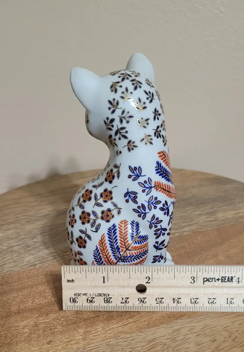The Tapestry Collection Cat Figurine is a beautiful porcelain piece made in Japan, featuring intricate Imari style details. This figurine is of a cat, adding a charming and playful touch to any collection. The brand's attention to detail and quality craftsmanship make this a unique and desirable piece for cat lovers and collectors alike.