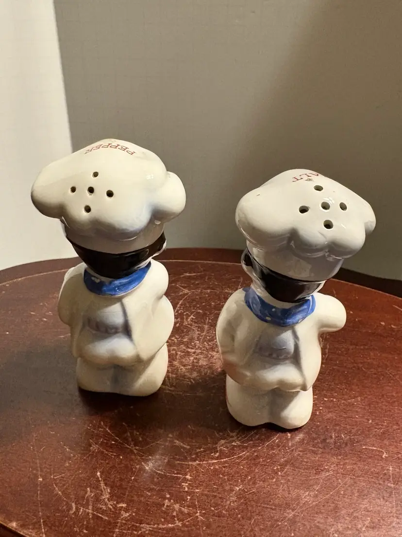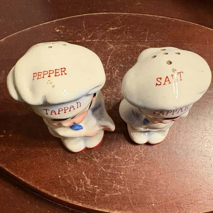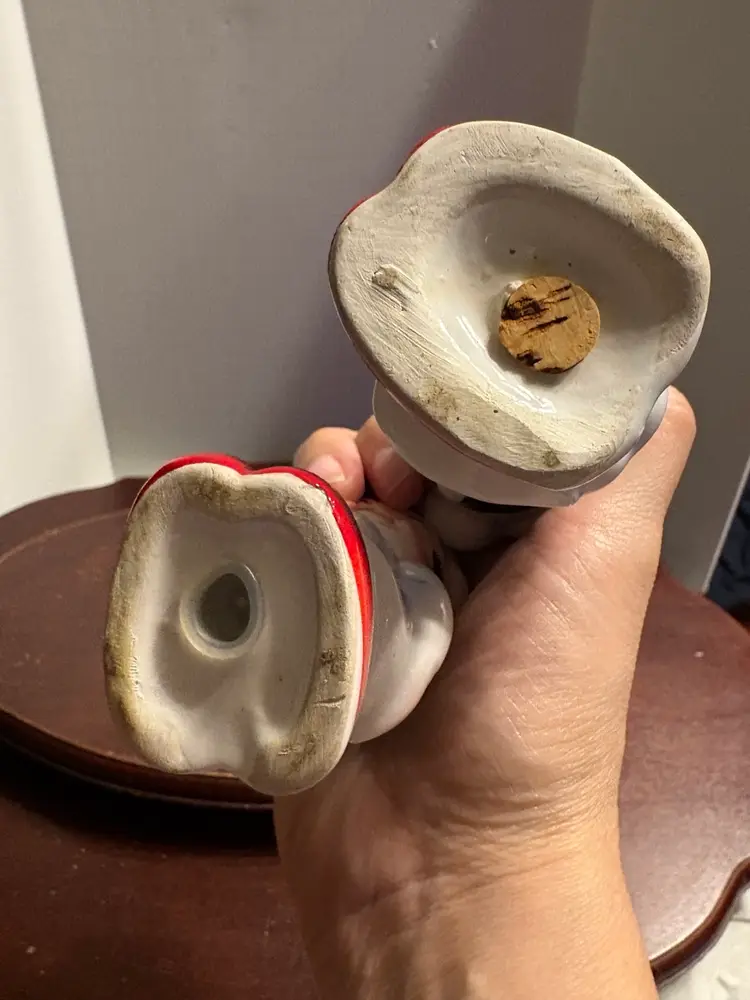 Made in Japan, 4” tall, has stoppers but one is original and one is replaced