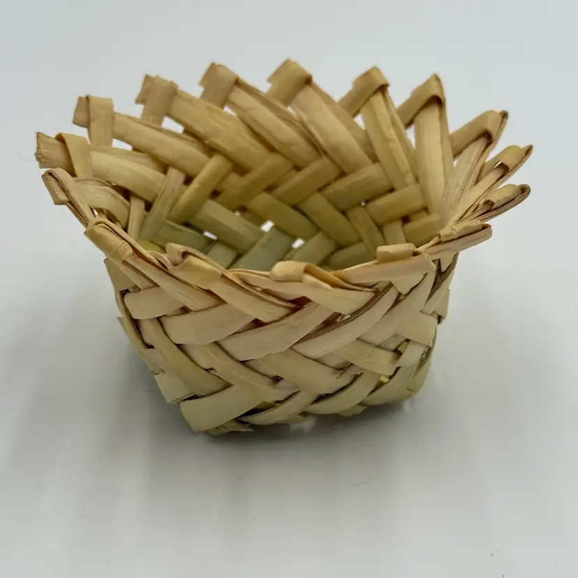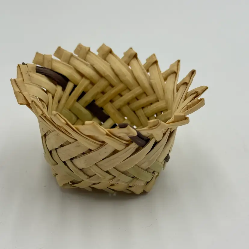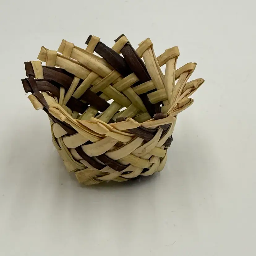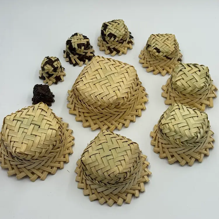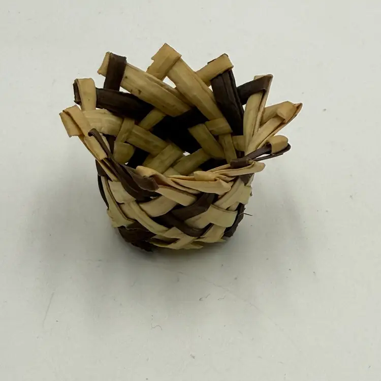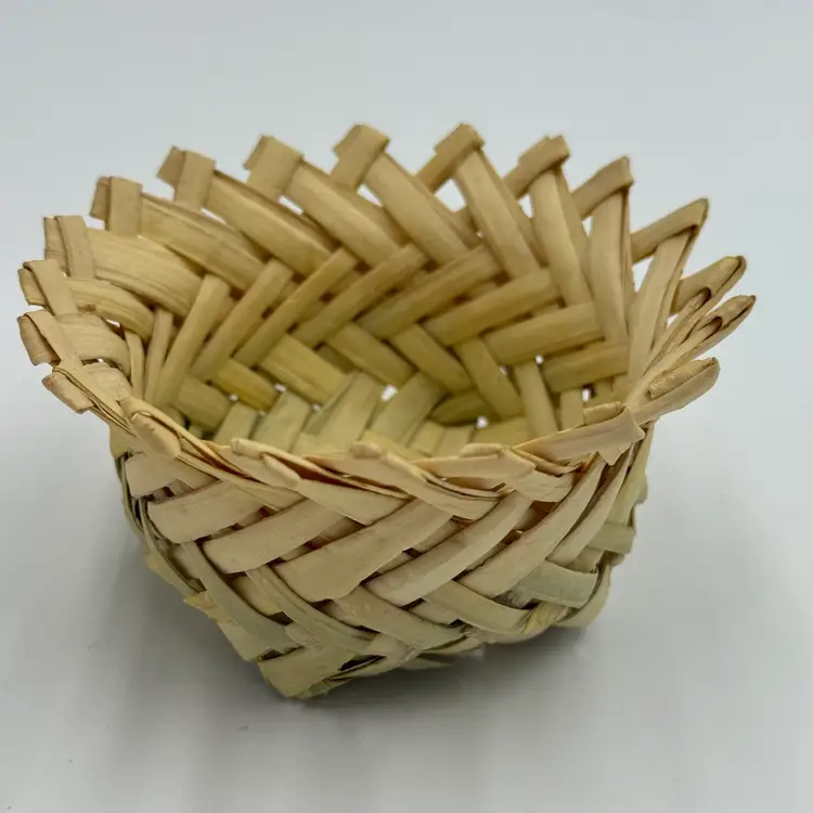 In good condition. Does not have any damage. 10 nesting baskets graduated. The smallest basket measures 1 1/4 inches tall and 1 3:4 inches in diameter. The largest basket measures 6 inches in diameter and 2 1/2 inches tall.