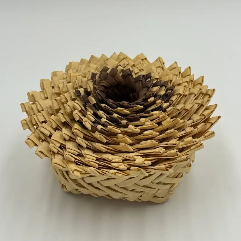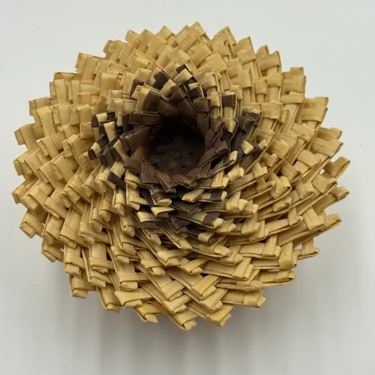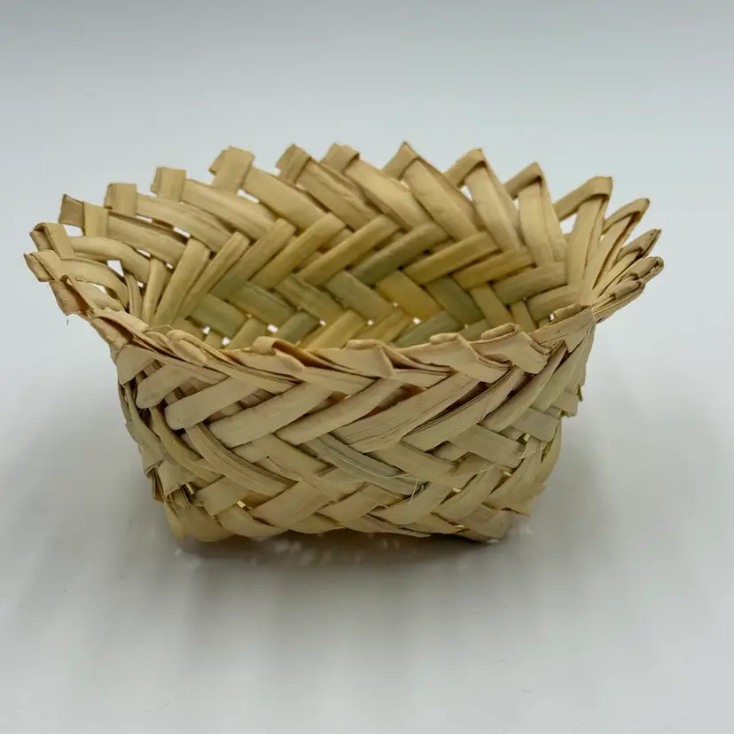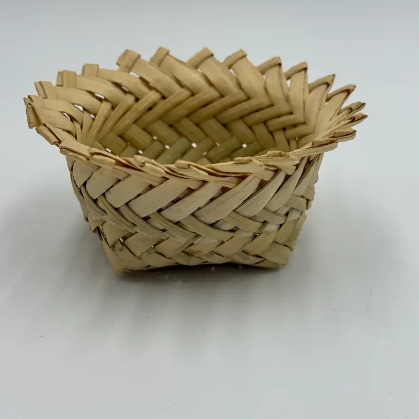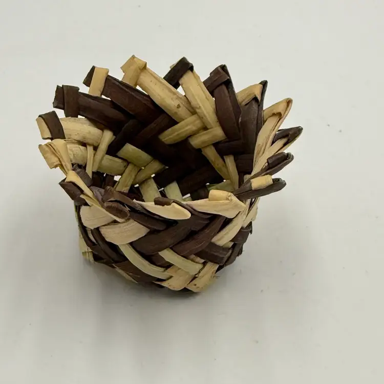 In good condition. Does not have any damage. 10 nesting baskets graduated. The smallest basket measures 1 1/4 inches tall and 1 3:4 inches in diameter. The largest basket measures 6 inches in diameter and 2 1/2 inches tall.