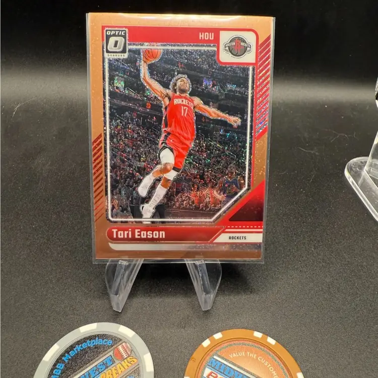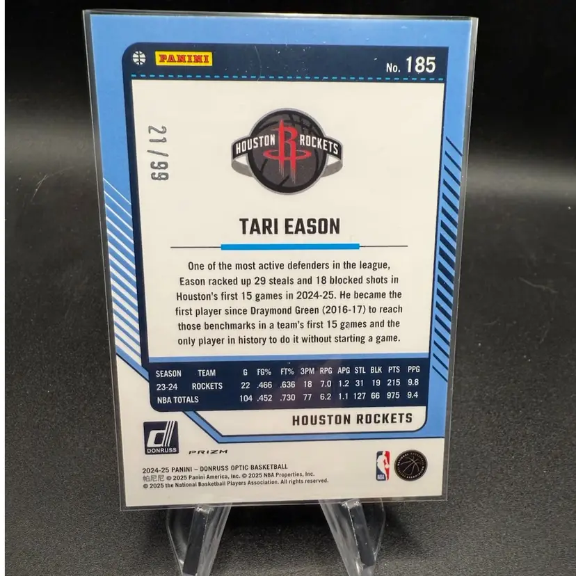 This is a Tari Eason #21/99 of the Houston Rockets from 24-25 NBA Optic.