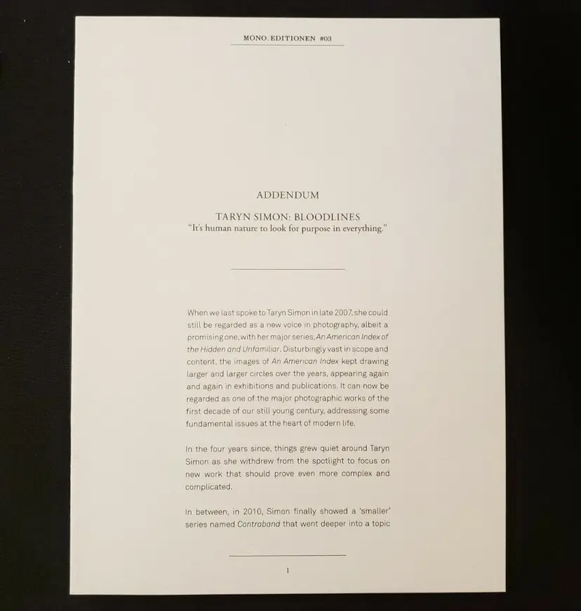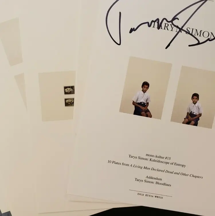 Binding: Unbound Language: English Special Attributes: 1st Edition, Illustrated, Signed Author: Taryn Simon Personalized: No Topic: Photography Subject: Art & Photography (398)