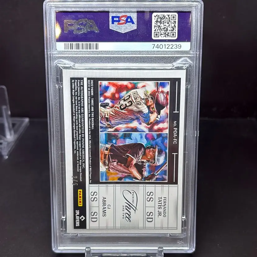 Fernando Tatis Jr. & CJ Abrams 2022 Panini Three & Two Plus One Dual Auto Red #’d 2/5 PSA 9, Auto 10 Free Priority Shipping