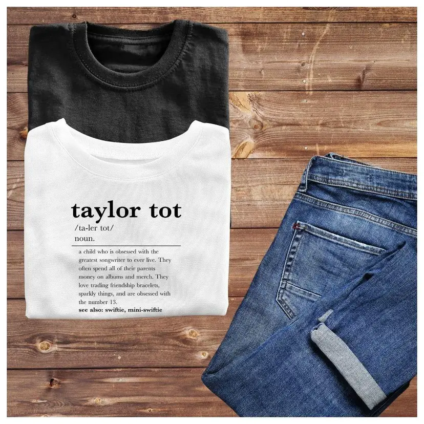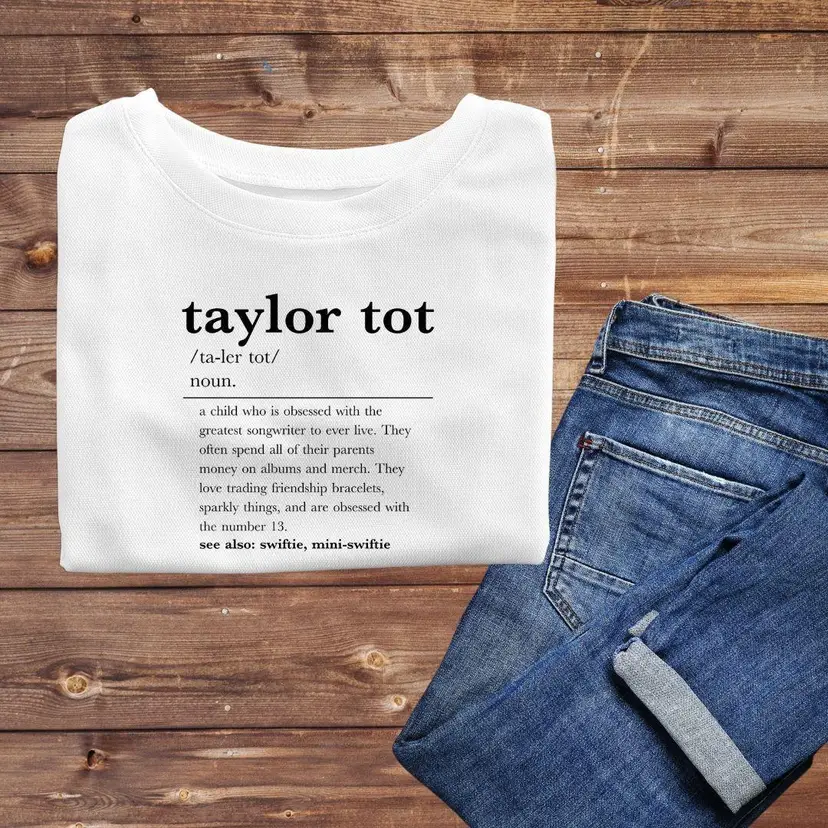 This t-shirt is perfect for all the little Taylor Tots out there! Design features a definition of 'taylor tot' and adds some fun humor to your little one's wardrobe! This tee is made from 100% cotton and runs true to size.