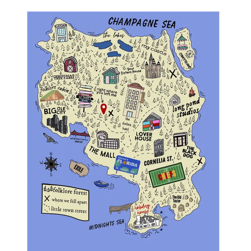 obsessing over this new design 😍 This ‘TaylorLand’ map features various points of interest referenced in Taylor Swift songs!