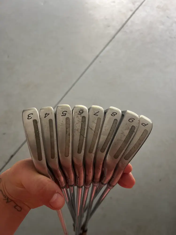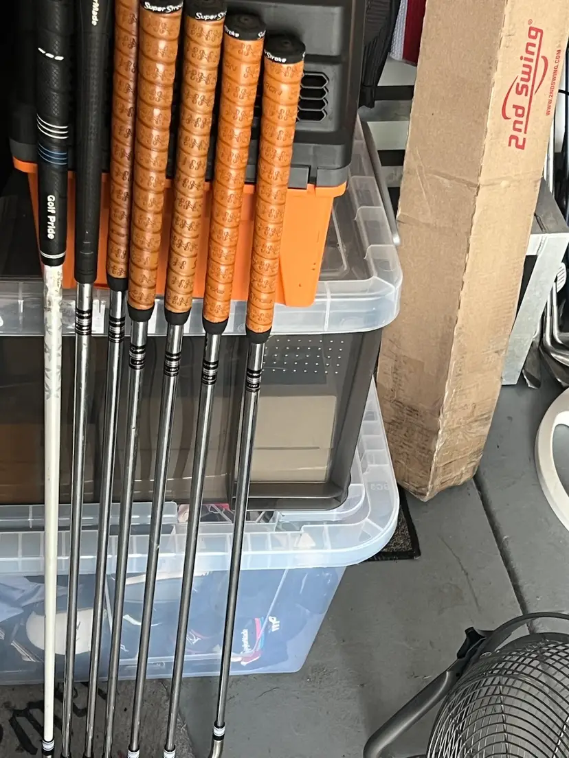 Regular flex. 4 iron has original grip. Didn’t use this one in the set is why it’s not changed. 3 iron has Mitsubishi fubuki shaft. Great grips.