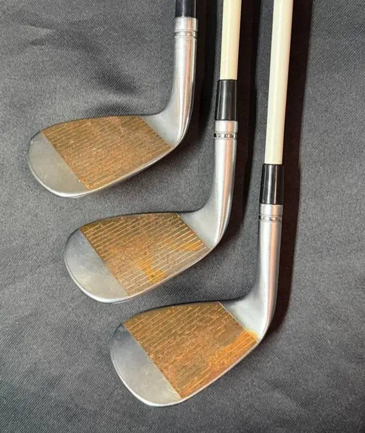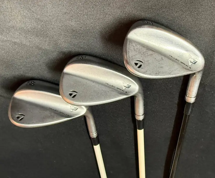 Women’s TaylorMade Milled Grind 3 RAW — 52°SB 09° Bounce w/ACCRA iS4 Shaft, 56°SB 12° Bounce w/ACCRA 40i Shaft, and 60° SB 10° Bounce w/ACCRA 40i Shaft all upgraded shafts all in great condition and all have new grips.