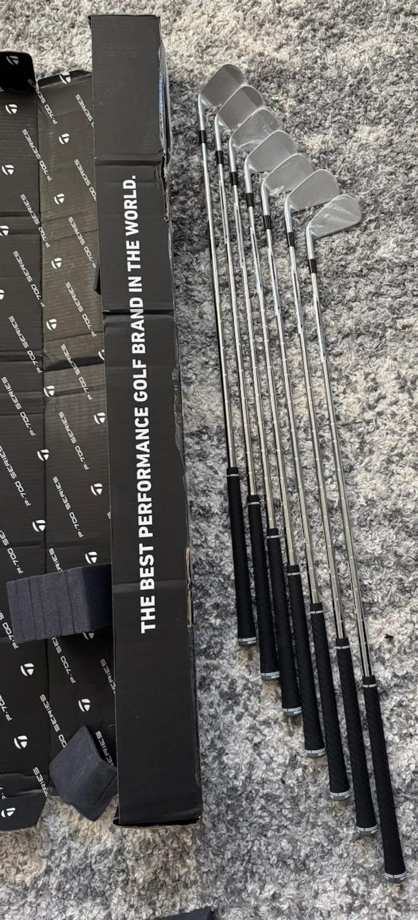 I’m selling my new in box Taylormade P790 iron set. They are 5-AW with Dynamic Gold 105 S300 stiff shafts and standard golf pride Taylormade grips. Only $10 shipping. Also, if you do not want the AW, I can sell for $150 less. Let me know if you are interested. Retail price is $1,400+. Get a deal on a new, great set of irons.