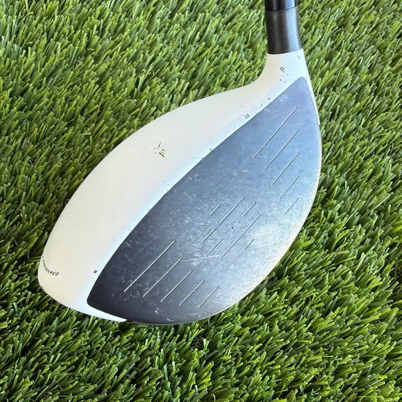 This driver is in great shape. There is minor wear to the club face and paint chips as is common with the TaylorMade white drivers on the club head.
