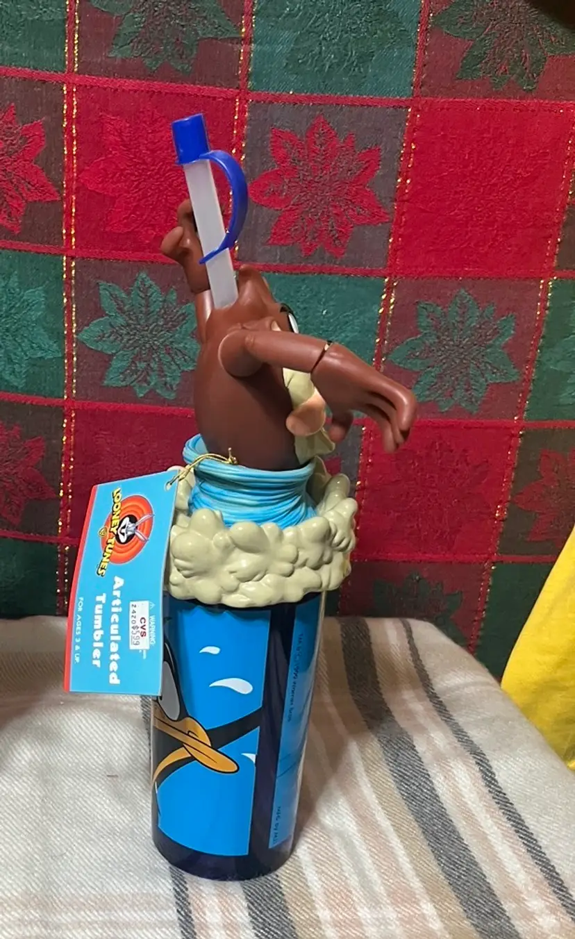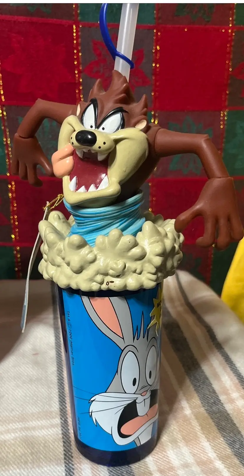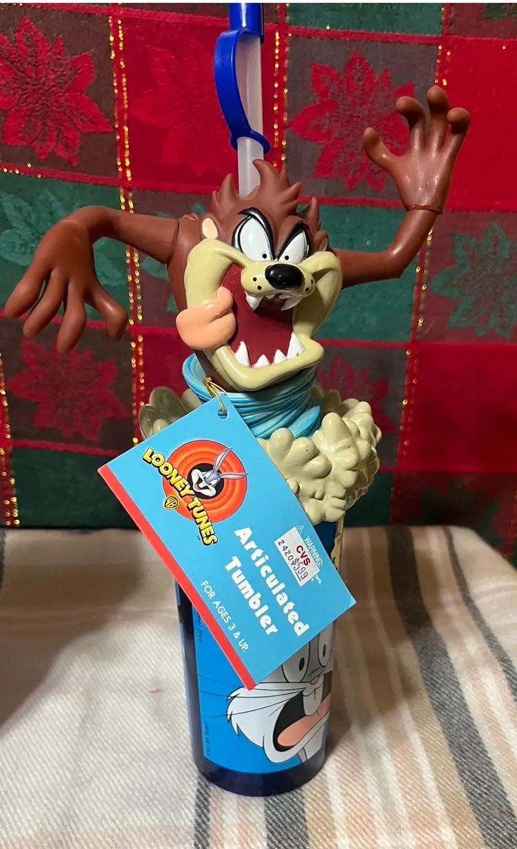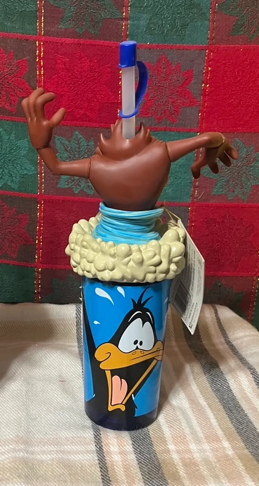 Tazmanian Devi articulated tumbler with straw looney tunes 1999 Warner bros bugs & daffy