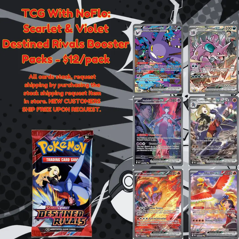 - All cards stack. - Request shipping by purchasing the stack shipping request item in store. - New customers ship free upon request.
