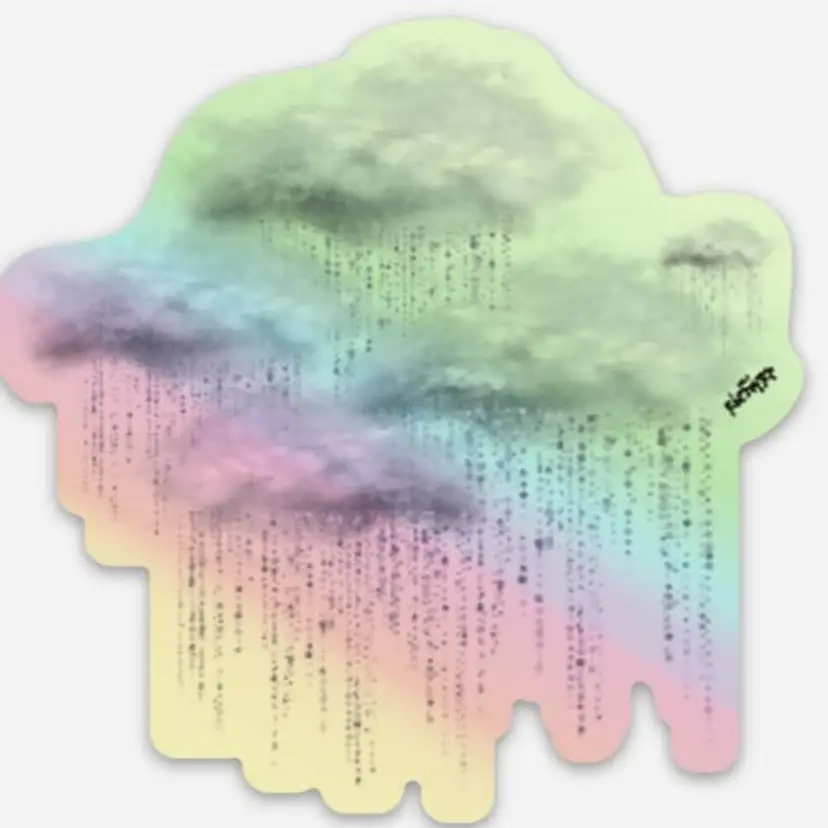 Two Stickers: Die Cut Sticker-3" x 2.48" (Tea Pot) Holographic Sticker-3" x 2.97" (Silver Clouds)