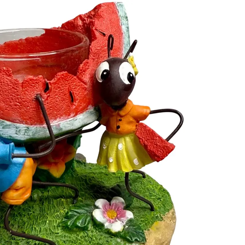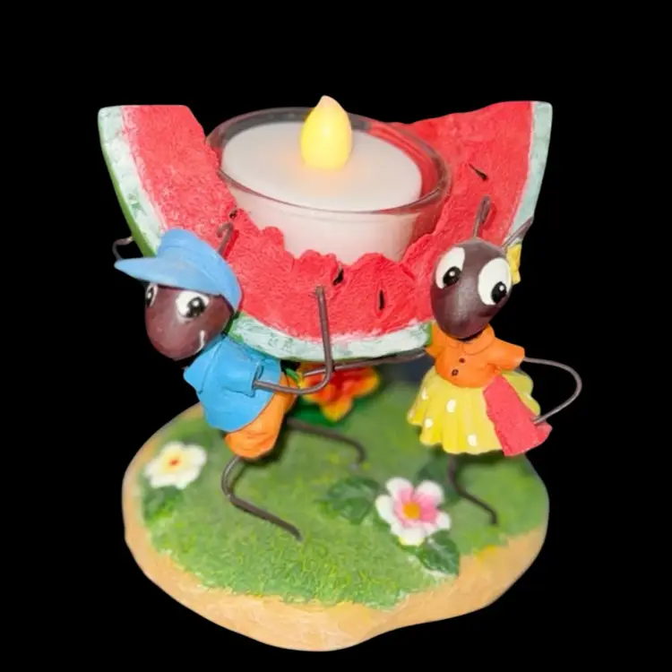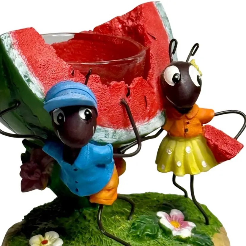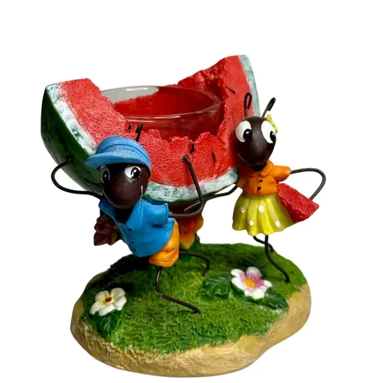 Whimsical Ants carrying watermelon tea light holder. Candle not included.