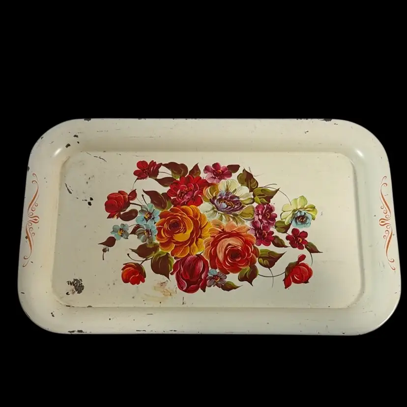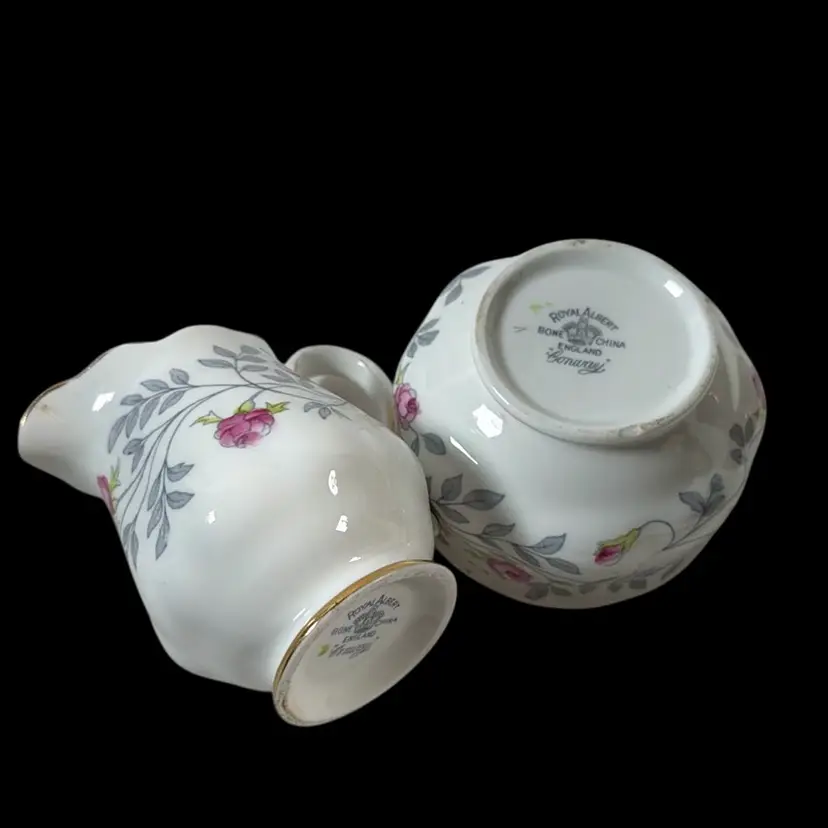 Includes -Vintage 14” x 9” floral metal tray -5” Japan floral teapot -Royal Albert England small cream & sugar(have chips see pictures) -Ceramic teacup 3.25” x 3” possibly a hobbyist piece