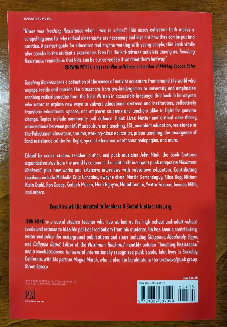 John Mink is a social studies teacher who has worked at the high school and adult school levels, and who refuses to hide his political radicalism from his students. He has been a contributing writer and editor for underground publications and zines including Slingshot, Absolutely Zippo: A Fanzine’s Anthology, and Collapse Board. Editor of the Maximum Rocknroll monthly column “Teaching Resistance” and a vocalist/bassist for several internationally recognized punk bands, John lives in Berkeley, California, with his partner Megan March, who is also his bandmate in the truewave/punk group Street Eaters.