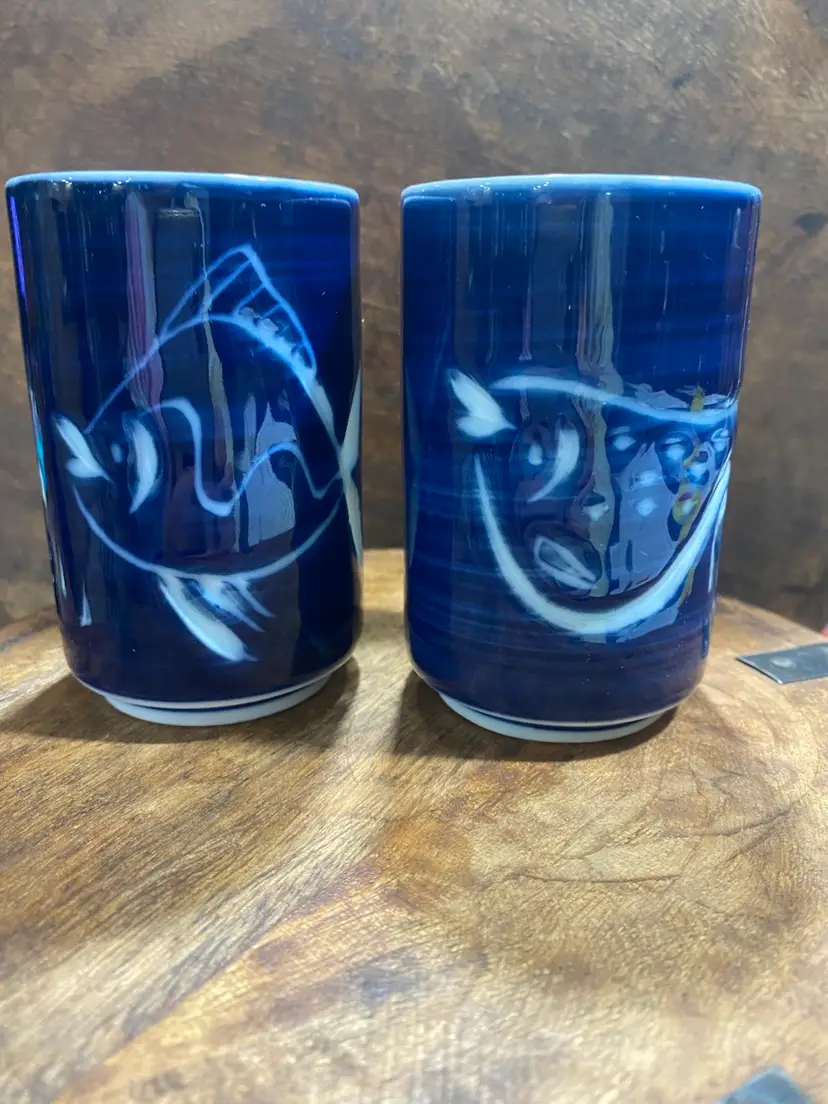 Gorgeous cups, in great preowned condition. Fish and seaweed motif