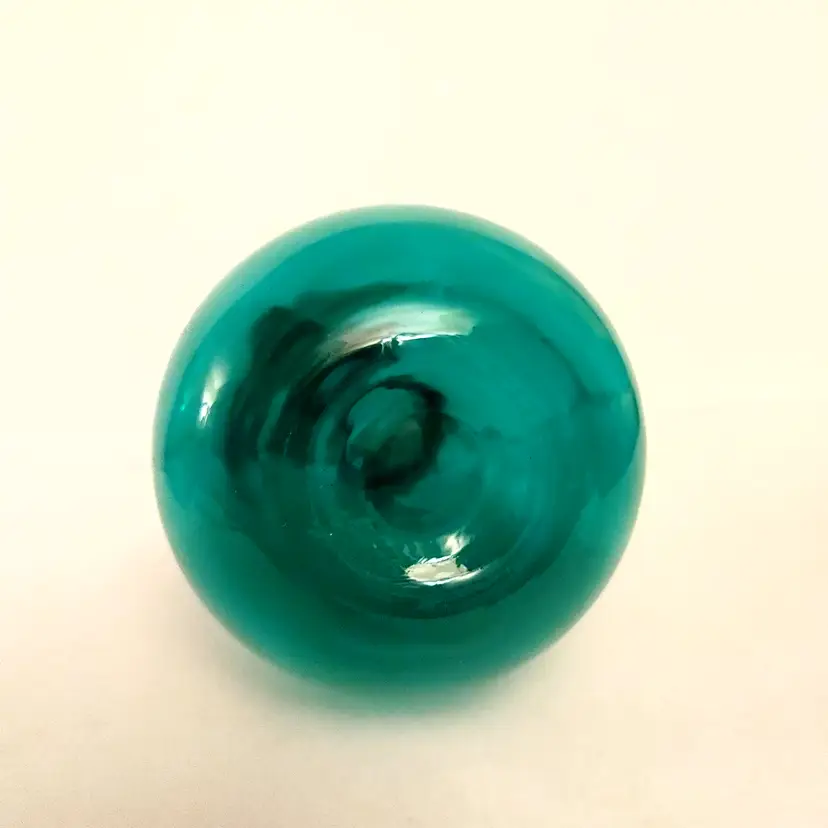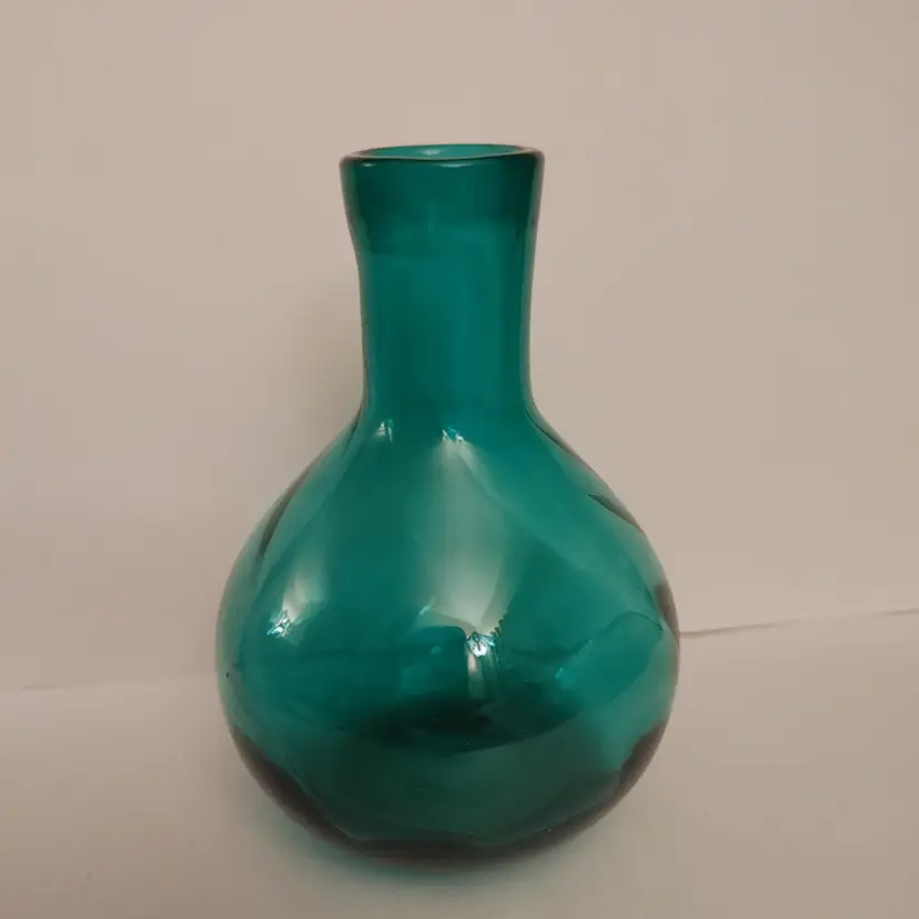 Teal glass vase. Unable to identify. No chips. Beautiful color! 5 in high.