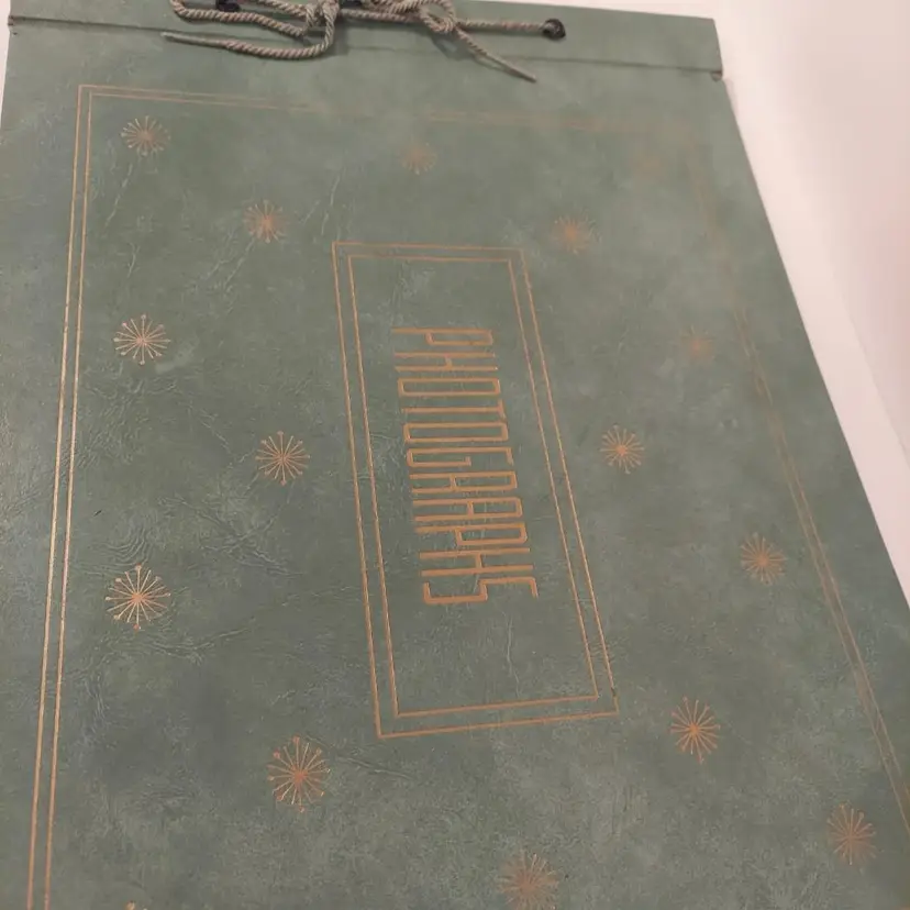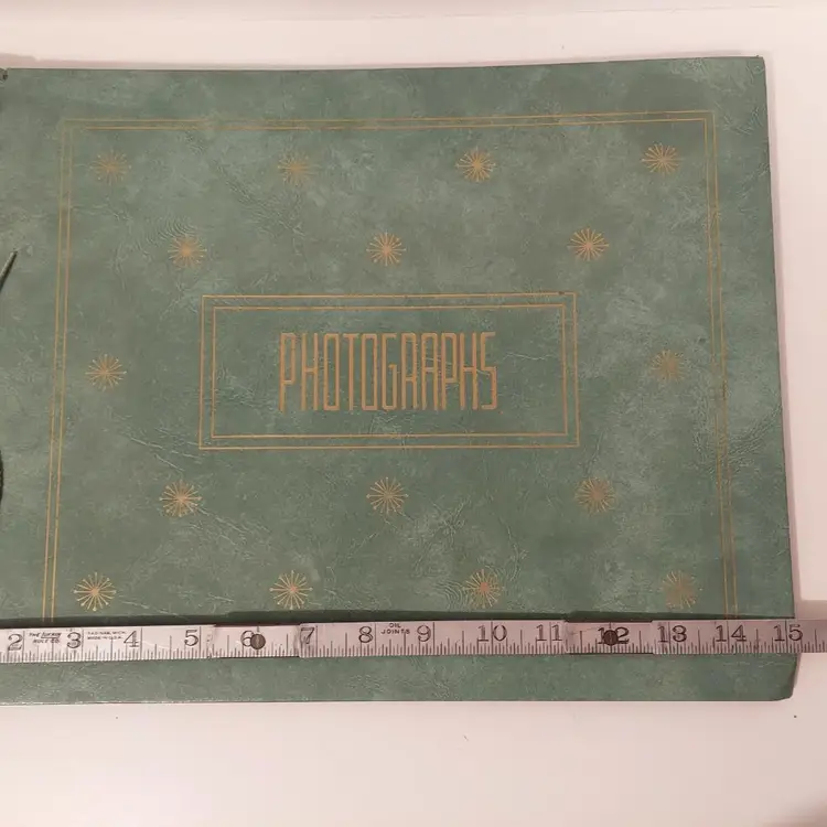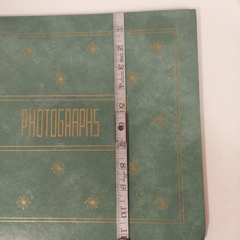 Very nice Vintage photo album in teal green with gold accents. This album contains 16 pages for photos or scrapbooking. Ot measures approximately 15.25x11.5 inches. There are a few signs of wear on the corners of the album cover, otherwise the album is in good condition, please see photos.