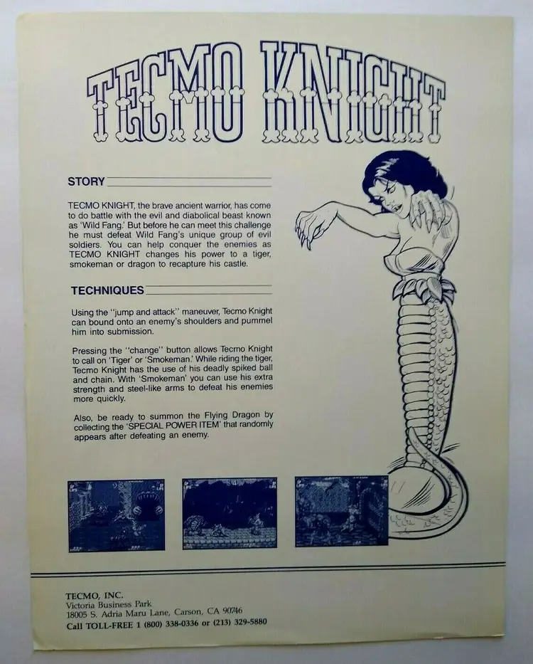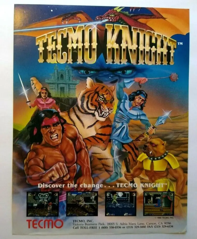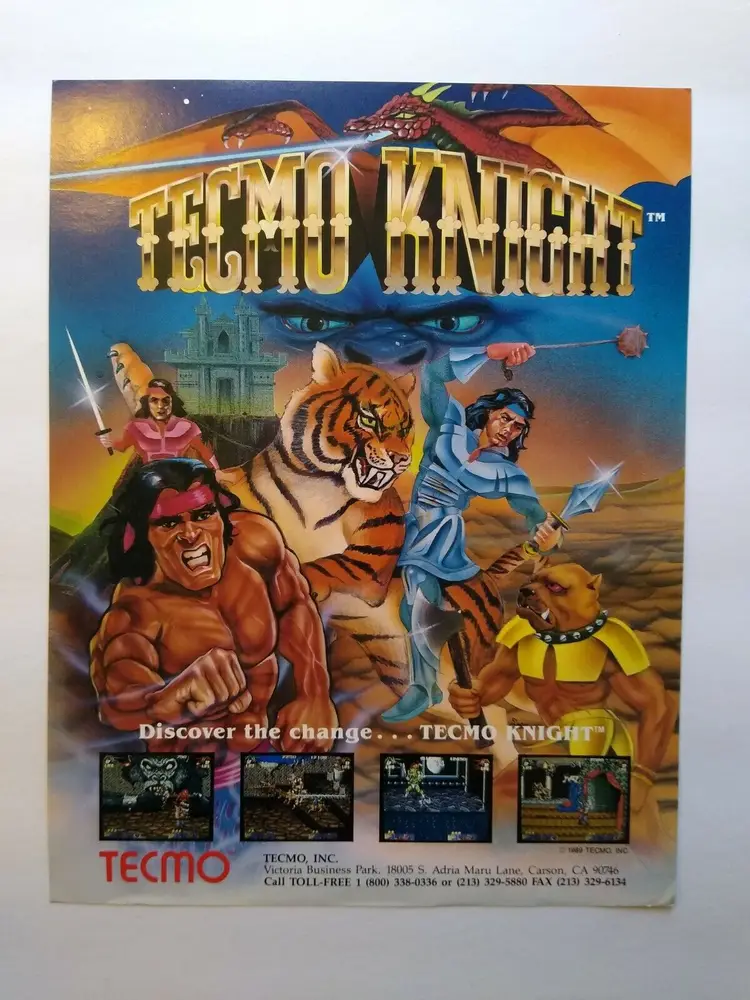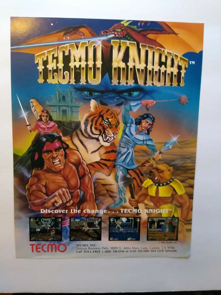 Arcade: Flyer Theme: Retro Gaming Modified Item: No Country/Region of Manufacture: United States Original/Reproduction: Original Year: 1989 Game Title: Tecmo Knights Brand: Tecmo