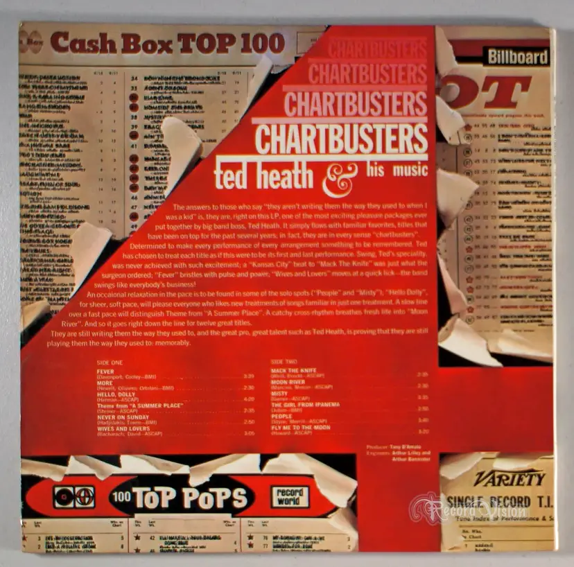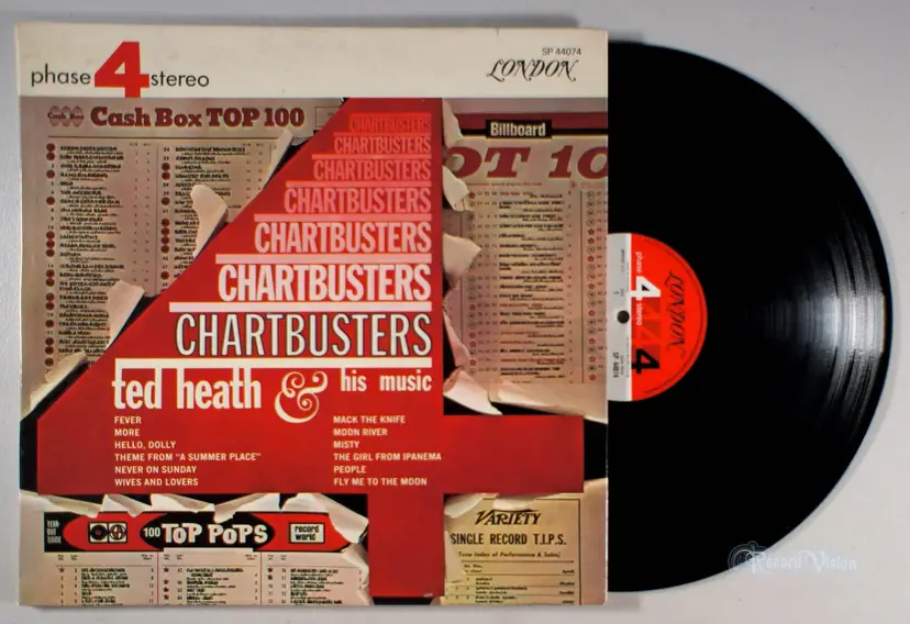 Chartbusters, is a grouping of songs by Ted Heath, featuring Fly Me To The Moon, Hello, Dolly, and more.