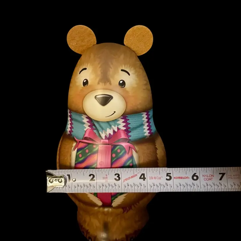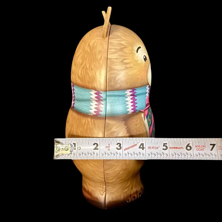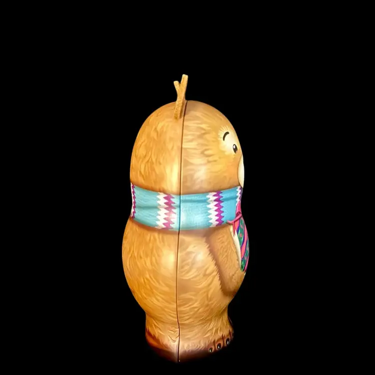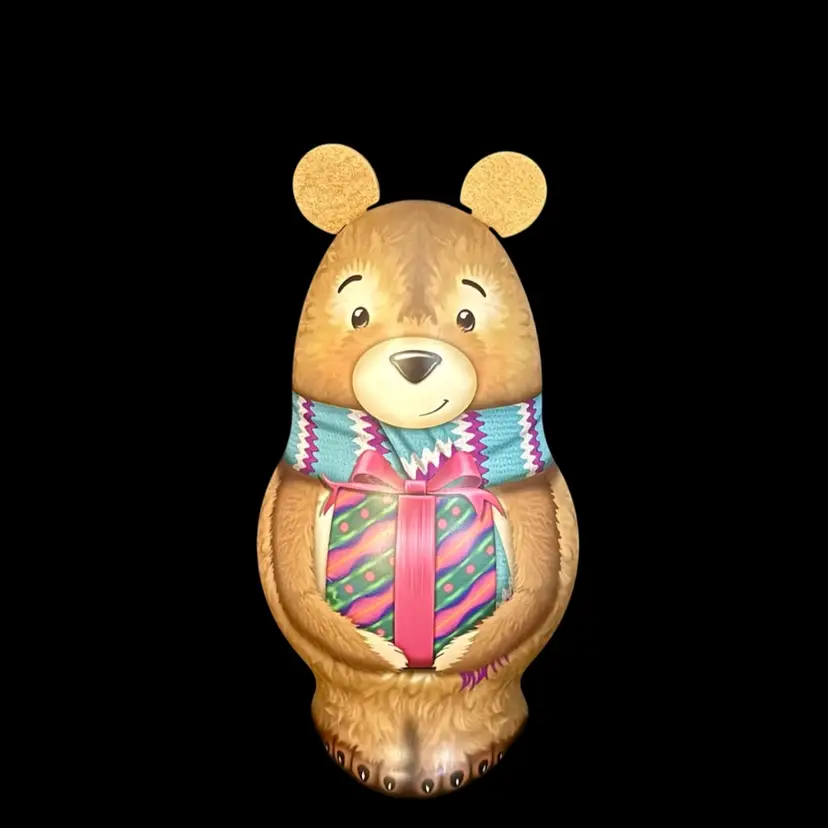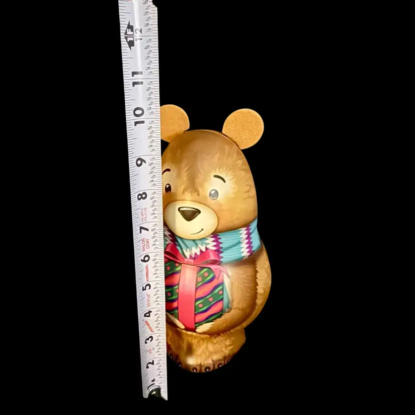 Get ready for the holiday season with this 3D Teddy Bear metal tin. Fill with gifts or candy. Standing at 9 inches tall, this free-standing tin is perfect for adding a festive touch under the tree or to any room.
