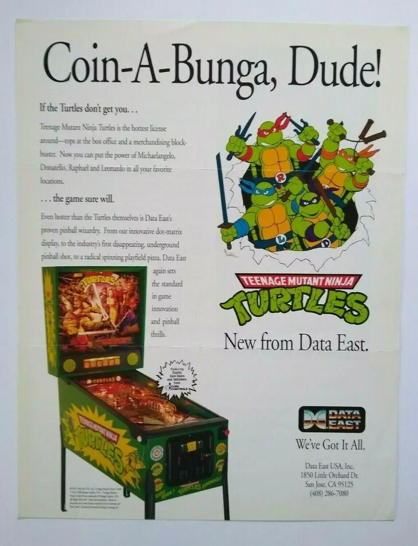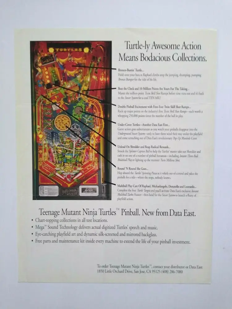 Pinball: Flyer Modified Item: No Country/Region of Manufacture: United States Year: 1991 Brand: Data East Model: Teenage Mutant Ninja Turtles