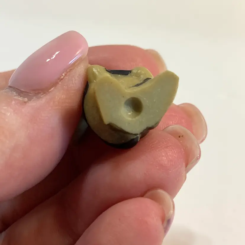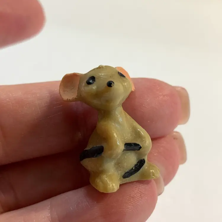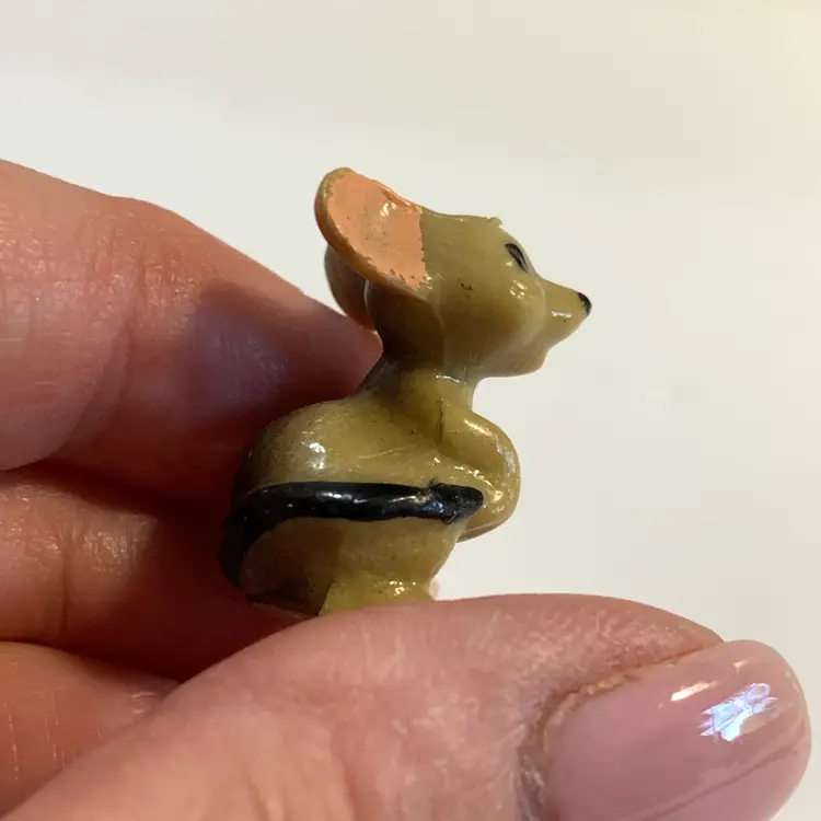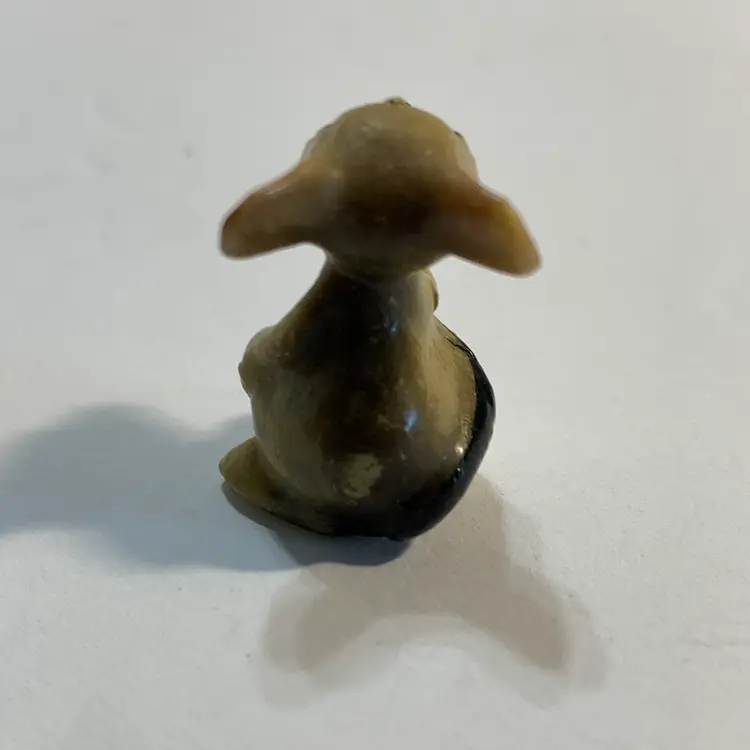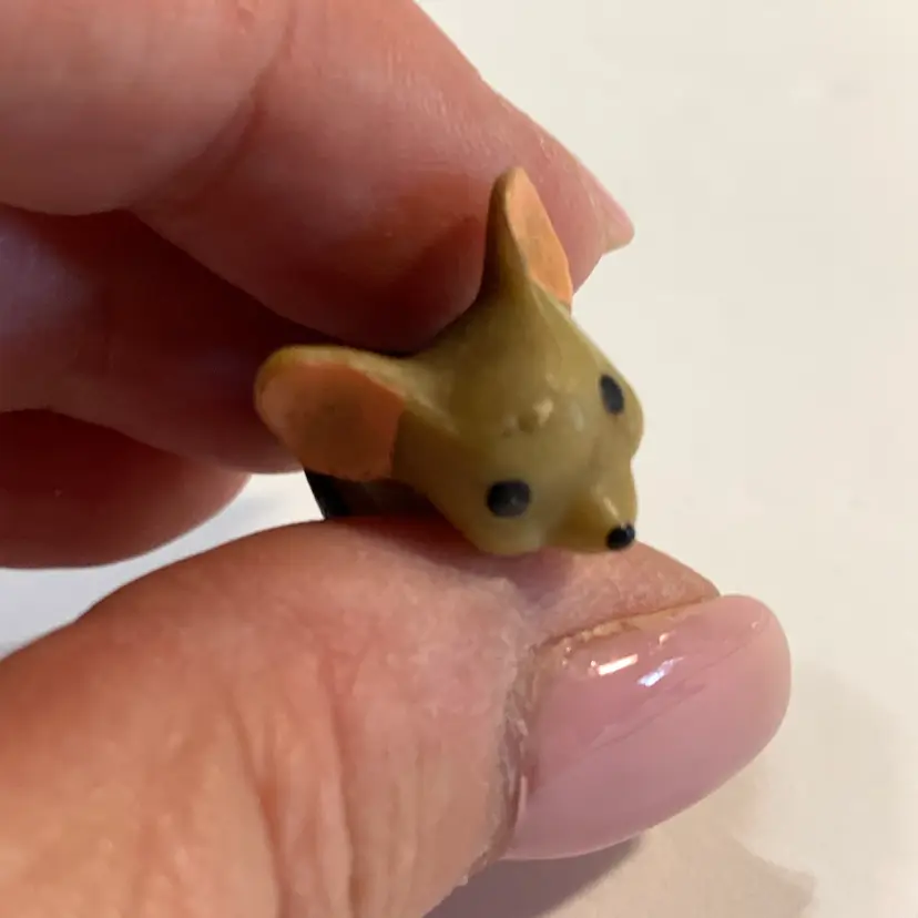 I just love this little one! No chips or cracks. Measures 5/8 inch wide and 1 inch tall. Weighs 1 ounce. If the actual postage ends up being less than what you paid, you will be refunded for anything over one dollar.