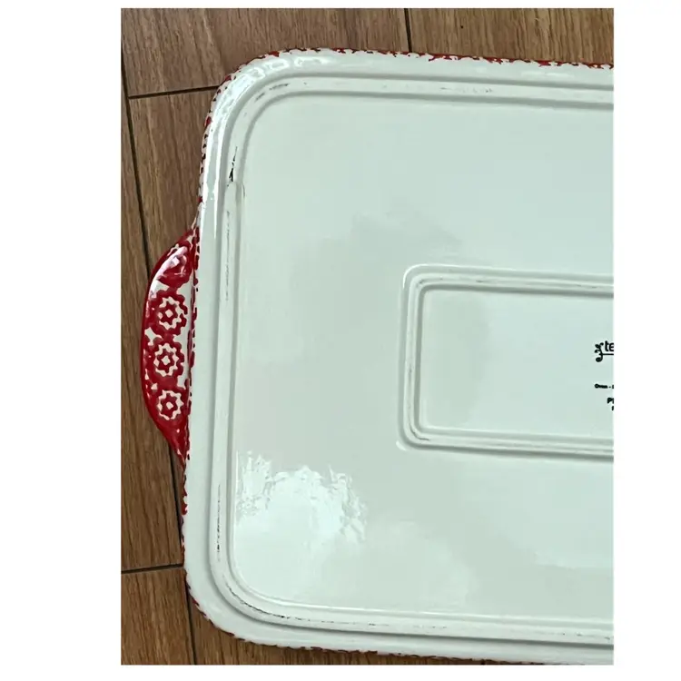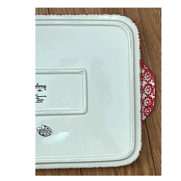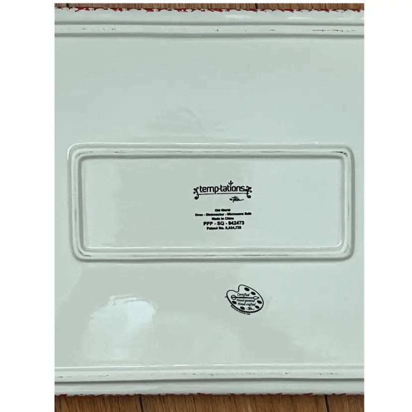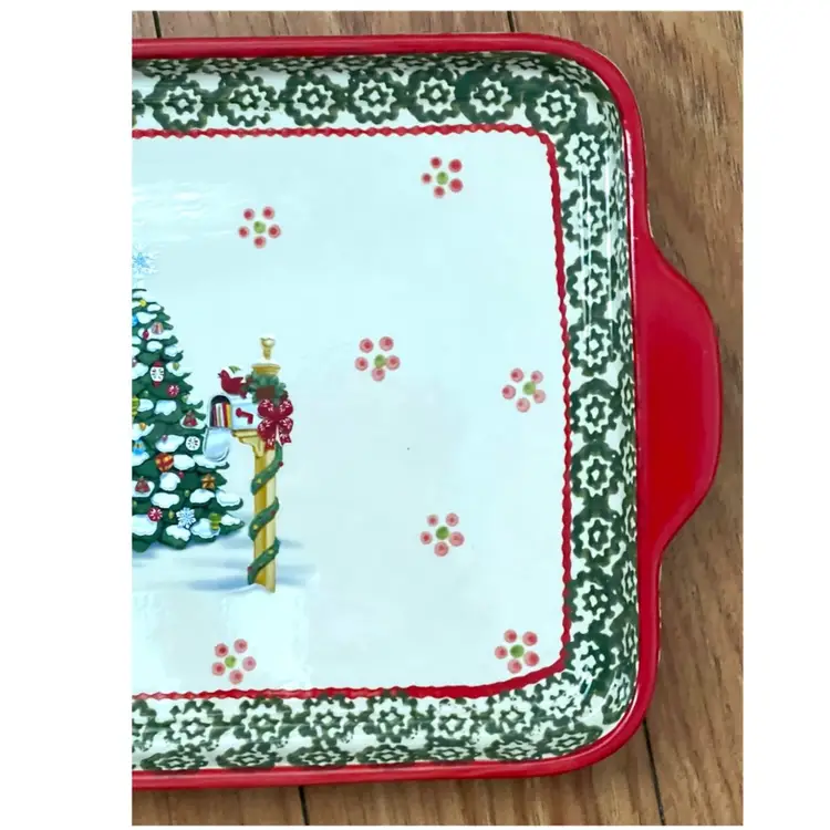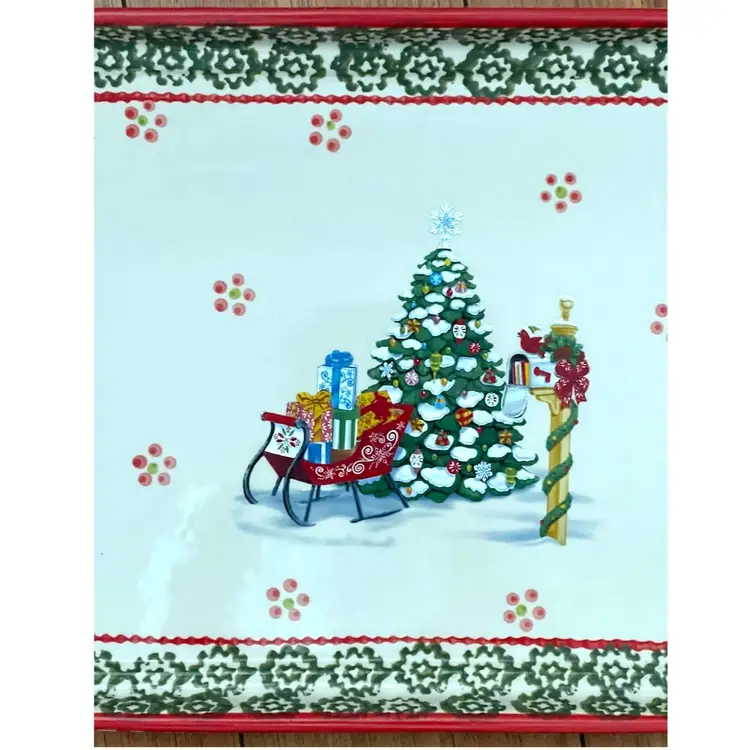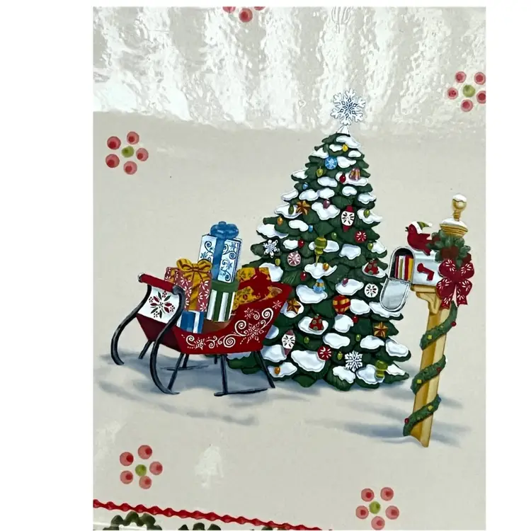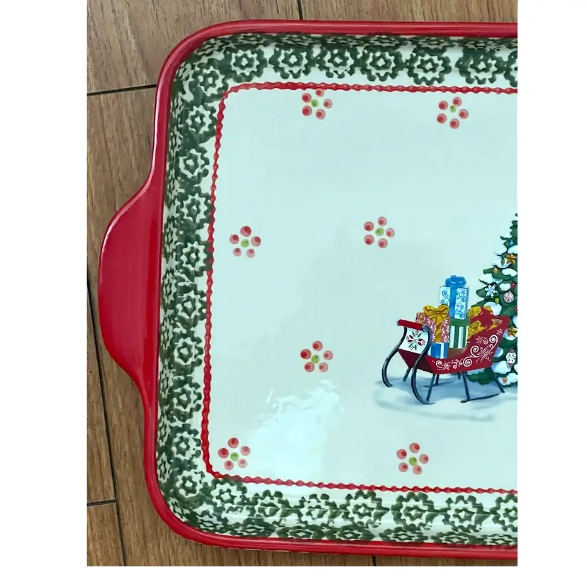 Temp-Tations Old World Pattern Ceramic Heavy Rectangle Christmas Tree Sleigh Serving Tray. 9.8x15.5 in. No chips/cracks