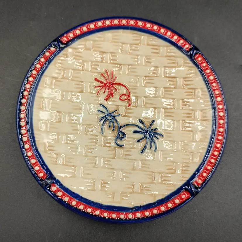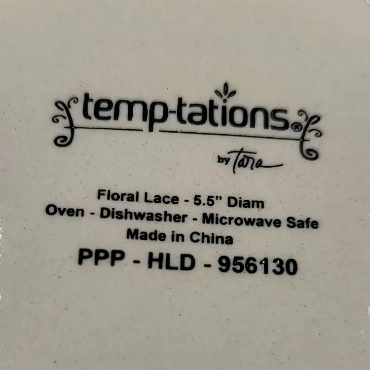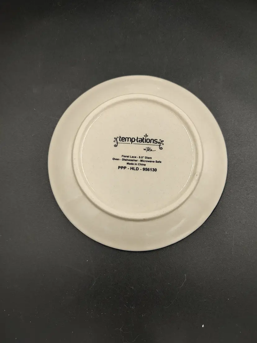 2011-2019 Temptations By Tara Floral Lace Fire Works Design 5.5" Bread Plates basket weave beaded trim hand painted oven, microwave and dishwasher safe stoneware. Made in China