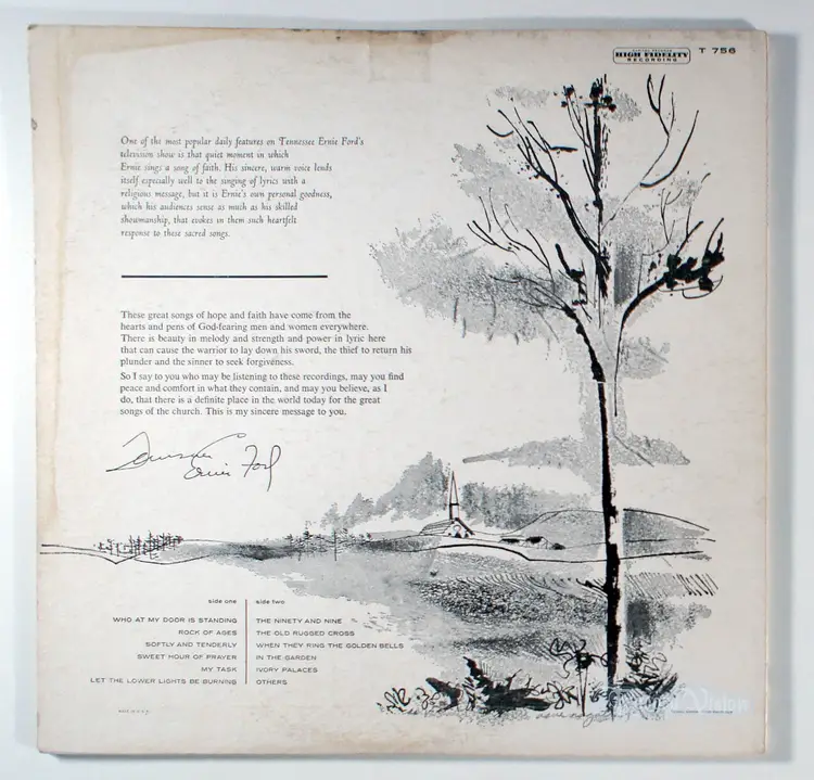 Hymns, by Tennessee Ernie Ford, released in 1956, is a landmark gospel record that showcases his rich baritone voice and deep-rooted faith, blending traditional hymns with a warm, accessible style. The album, one of the first gospel LPs to gain widespread popularity, resonated with post-World War II audiences seeking spiritual solace, selling over a million copies and earning a gold certification. It features a collection of well-known hymns such as Amazing Grace and Rock of Ages, performed with sincerity and backed by simple, heartfelt arrangements. While no singles from the album charted as major hits, its cultural impact was significant, establishing Ford as a leading figure in gospel music and influencing future artists in the genre. The album's enduring popularity led to its reissue in various formats, cementing its place in American music history.