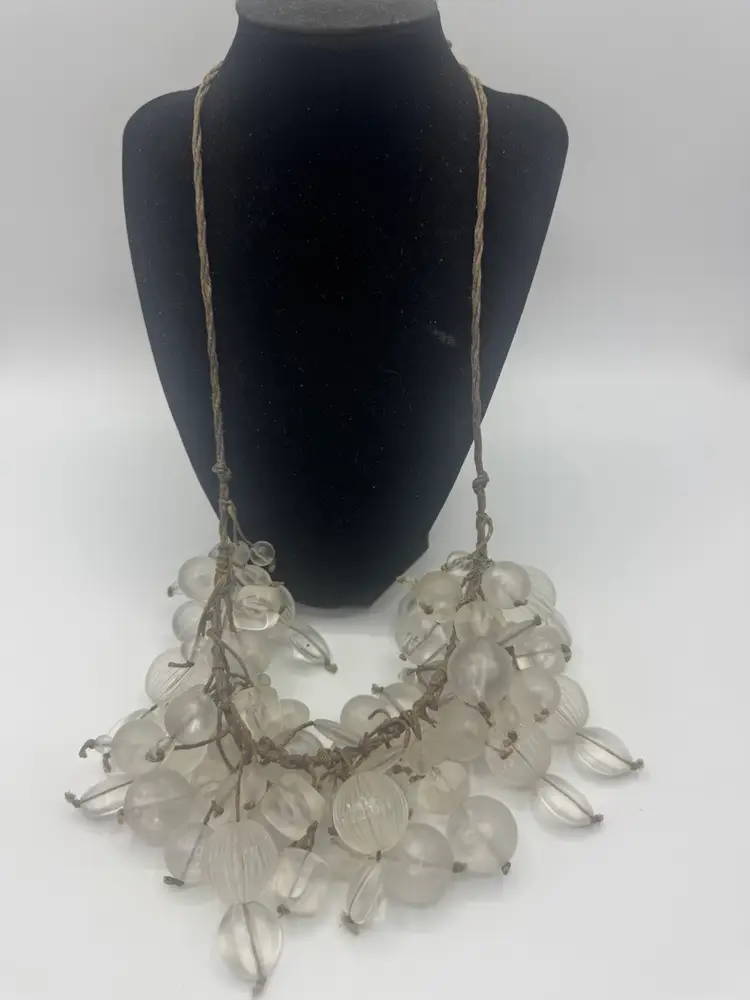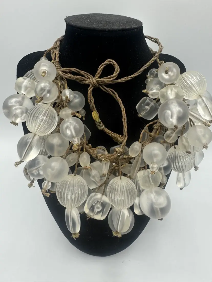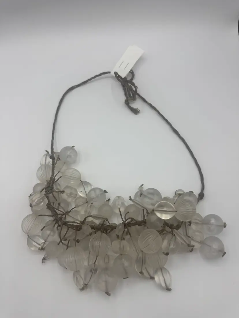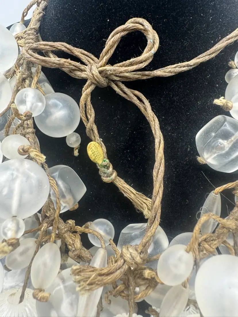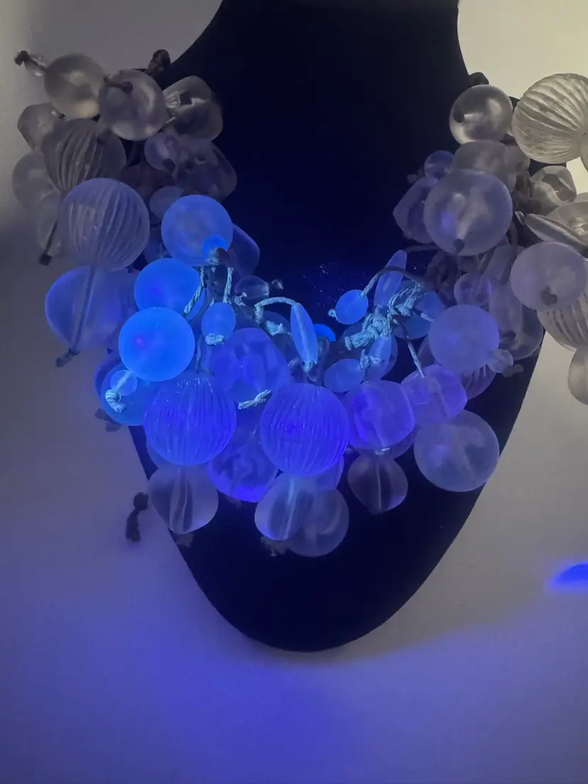 The Teresa Goodall Handmade One Of A Kind Necklace is a unique piece of vintage jewelry. This adjustable necklace features fringe and beaded elements, with a signed brand label. The materials used in the creation of this piece add to its one-of-a-kind appeal. Ideal for women looking to add a touch of artisanal charm to their outfit, this necklace is a standout accessory in any jewelry collection. Has UV Glow! Excellent condition 26”