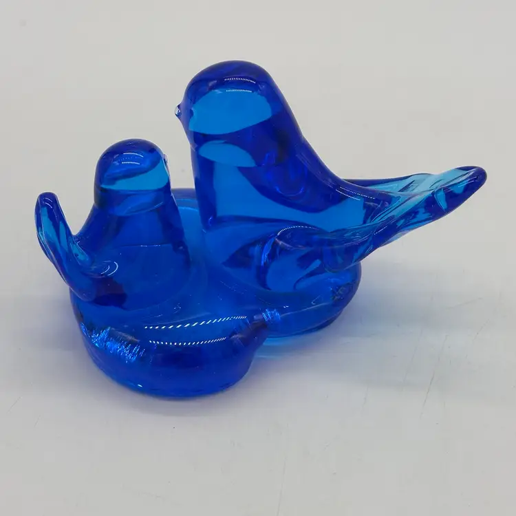 Vintage Terra Studios Double Bluebird Of Happiness Art Glass Figurine Leo Ward 1991. Condition is used but in good condition. Does not have any chips or cracks. Measures approximately 3 inches tall and 5 inches long.