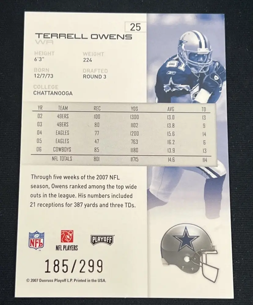 Terrell Owens 2007 Playoff NFL Playoffs Gold Parallel /299 #25 Dallas Cowboys