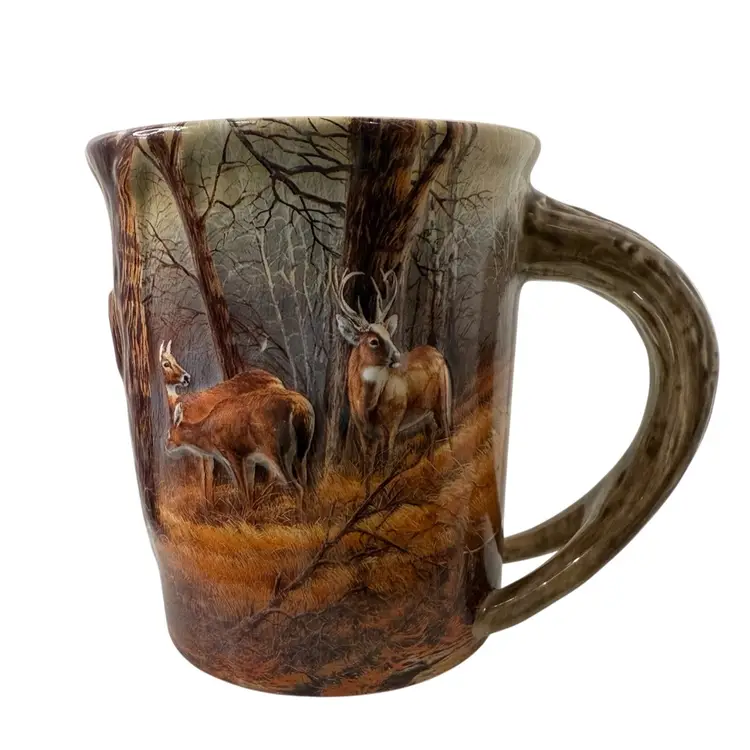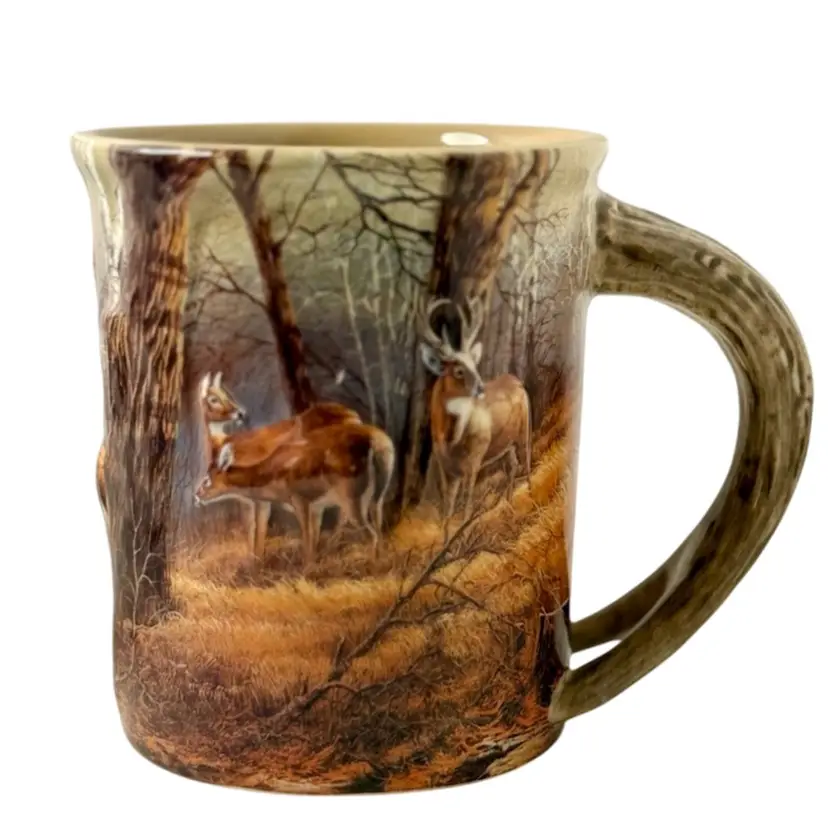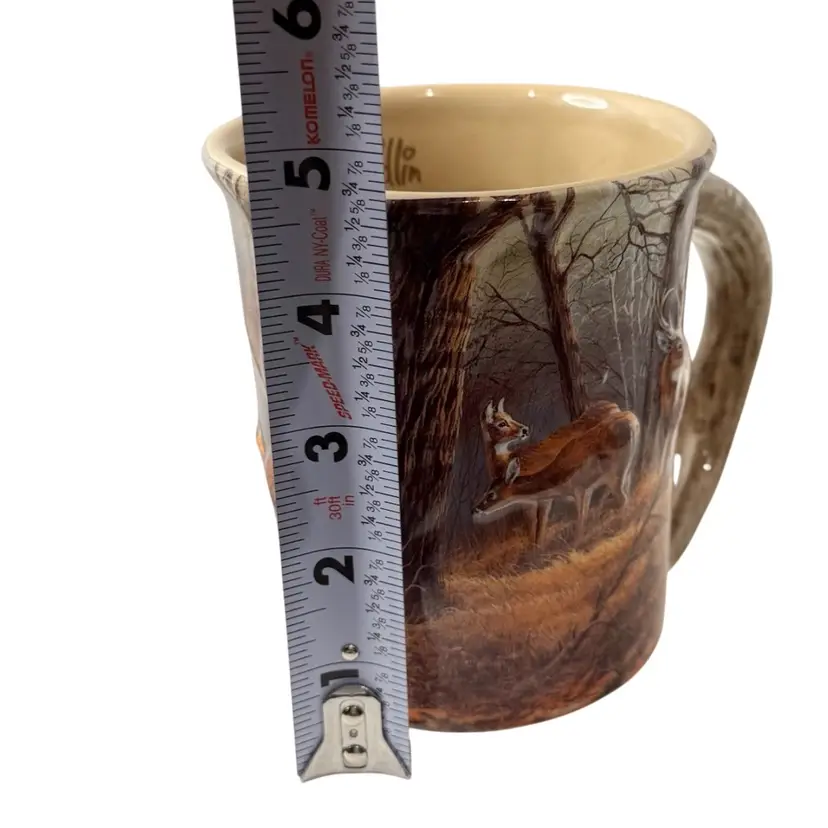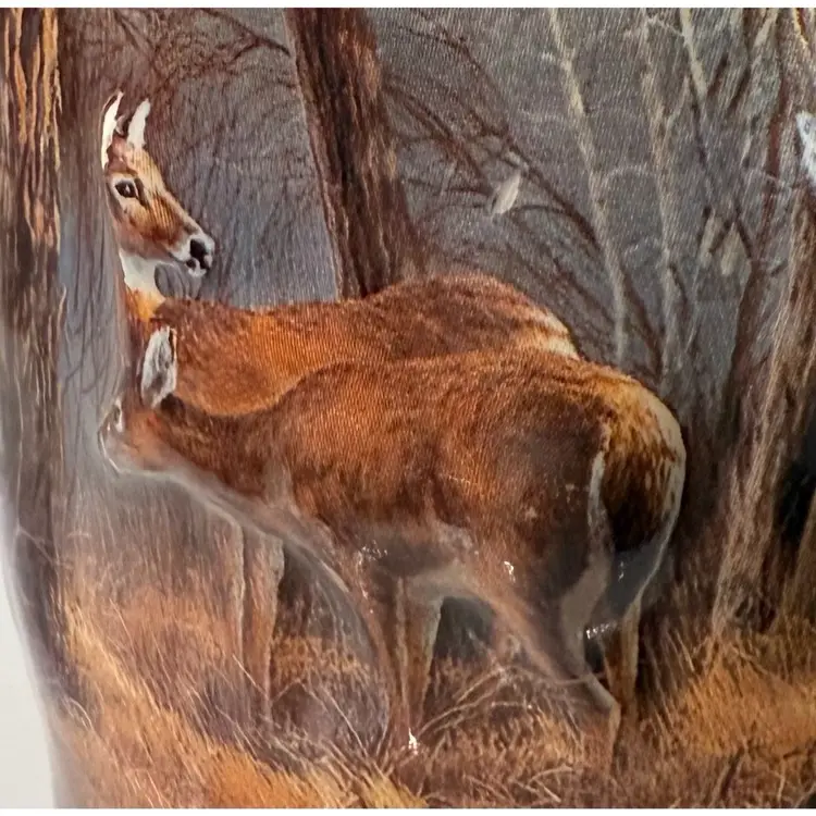 Condition: There are a couple of smaller light scratches on the smallest deer in the front. Just above the two deer, in the tree line there is a spot missing the paint. See pictures 9 & 10. No other condition issues noted. Measurements: Approximately 4.75” T x4” W (top). N9-10 Thank you for looking!