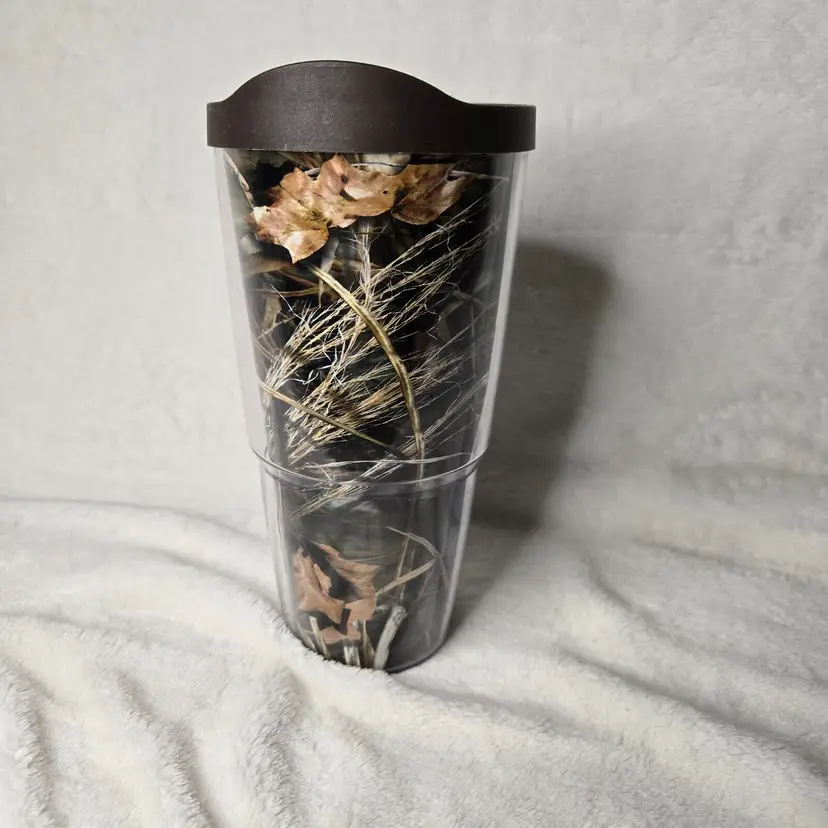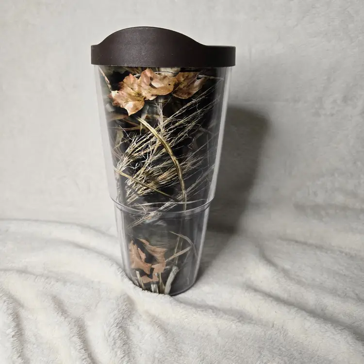 – Pattern: Camouflage – Shape: Round – Bundle Description: Cup & Top – Color: Brown – Material: BPA-Free Plastic – Set Includes: Cup Lid, Tumbler, Top – Personalize: No – Brand: Tervis – Type: Tumbler – Capacity: 24 oz – Theme: Tree – Features: Decorated, Dishwasher Safe, Insulated for hot or cold drinks – Country/Region of Manufacture: United States – Service For: 1 – Glassware Type: Cup or Tumbler